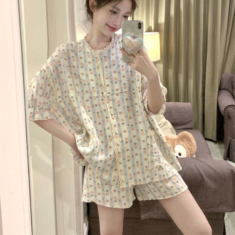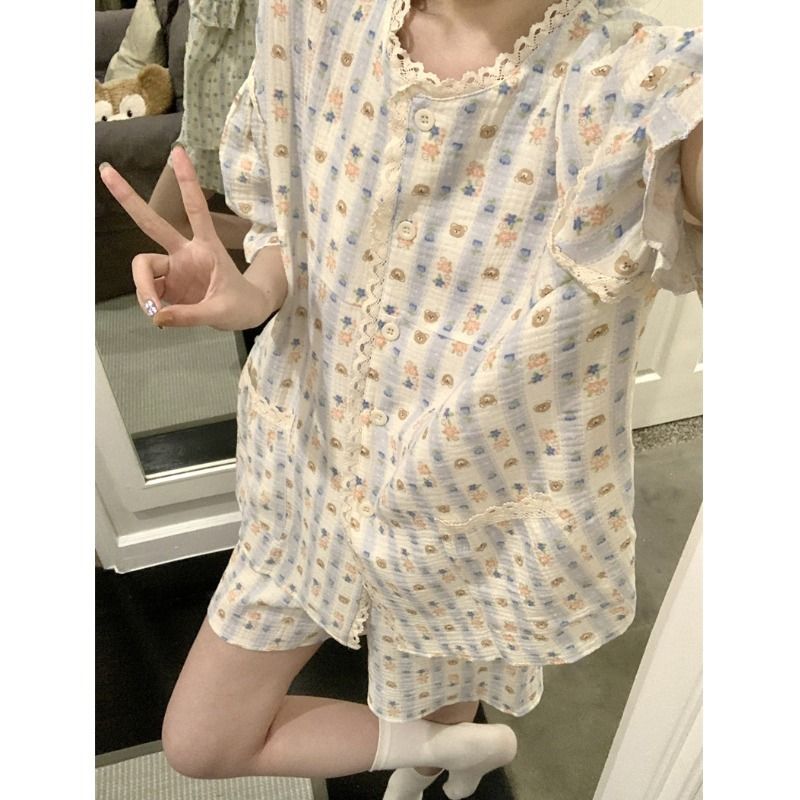 夏天可爱小熊薄款睡衣女夏季新款短袖短裤网红学生宽松家居服套装