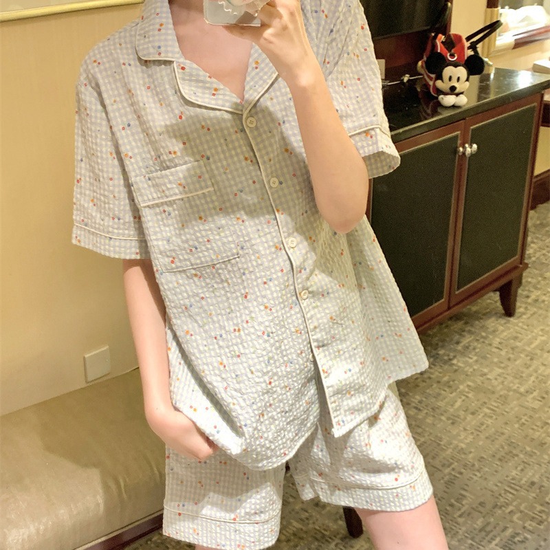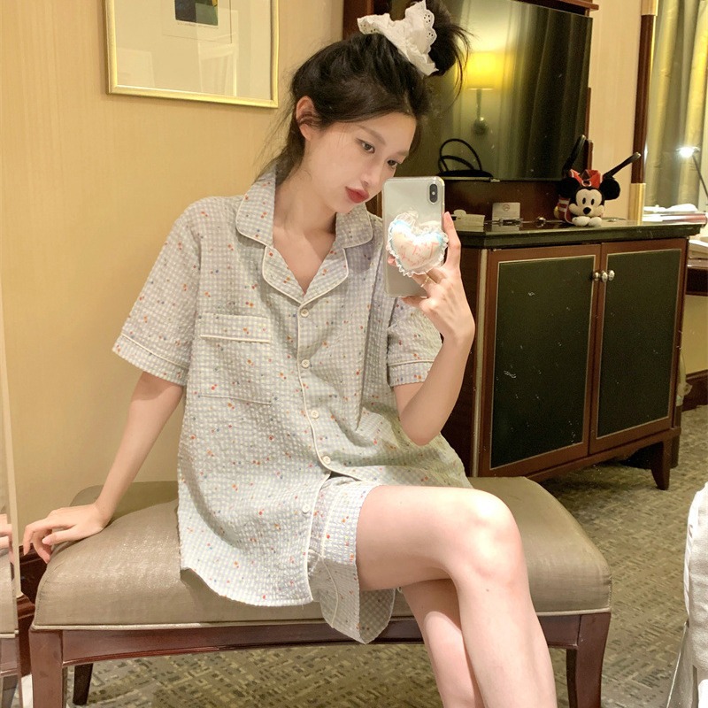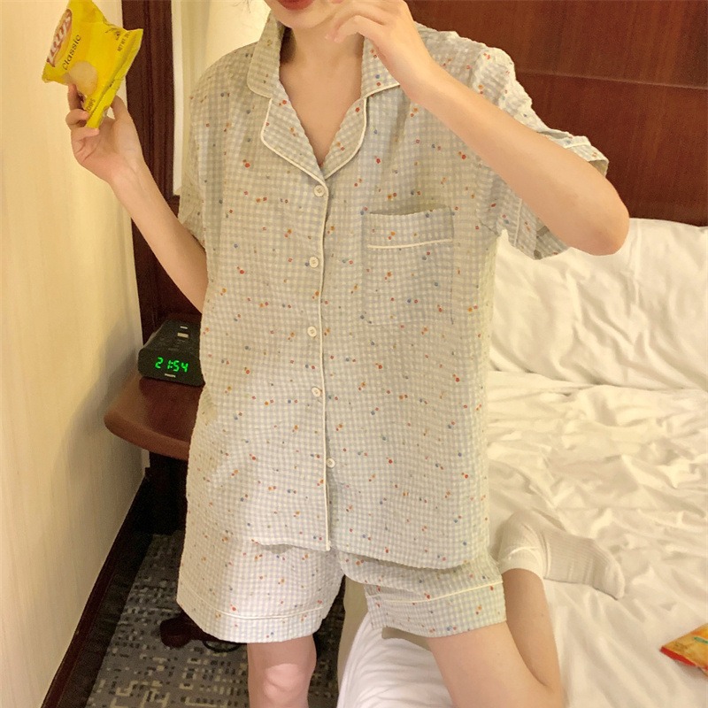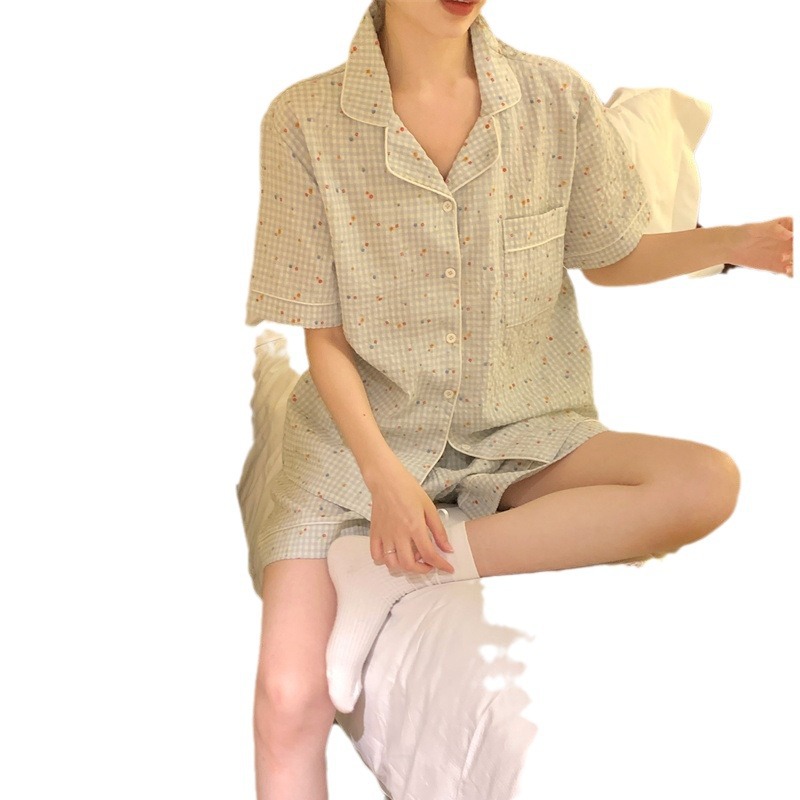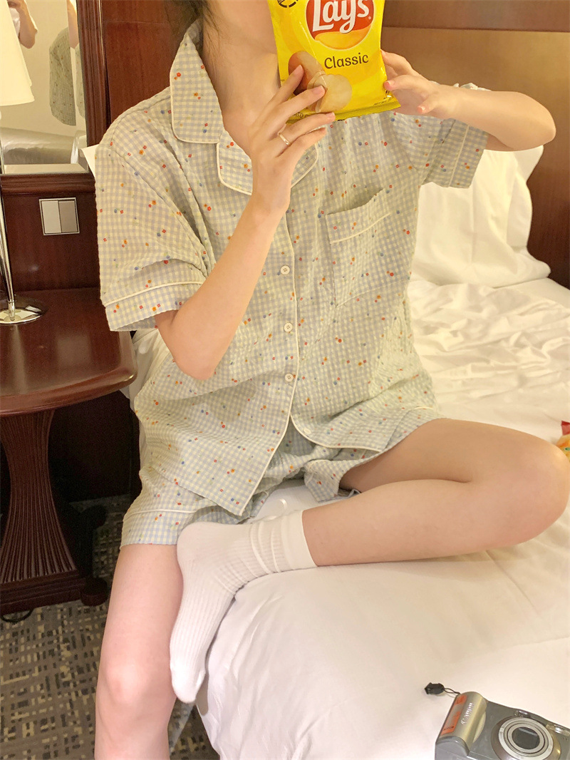 短袖短裤韩版休闲夏季新品甜美格子小碎花家居服睡衣套装