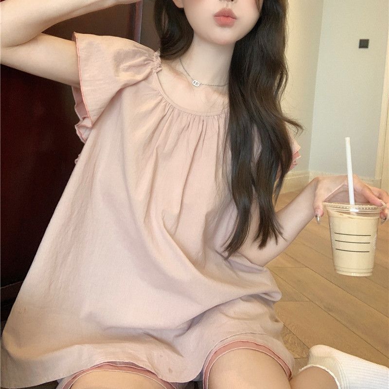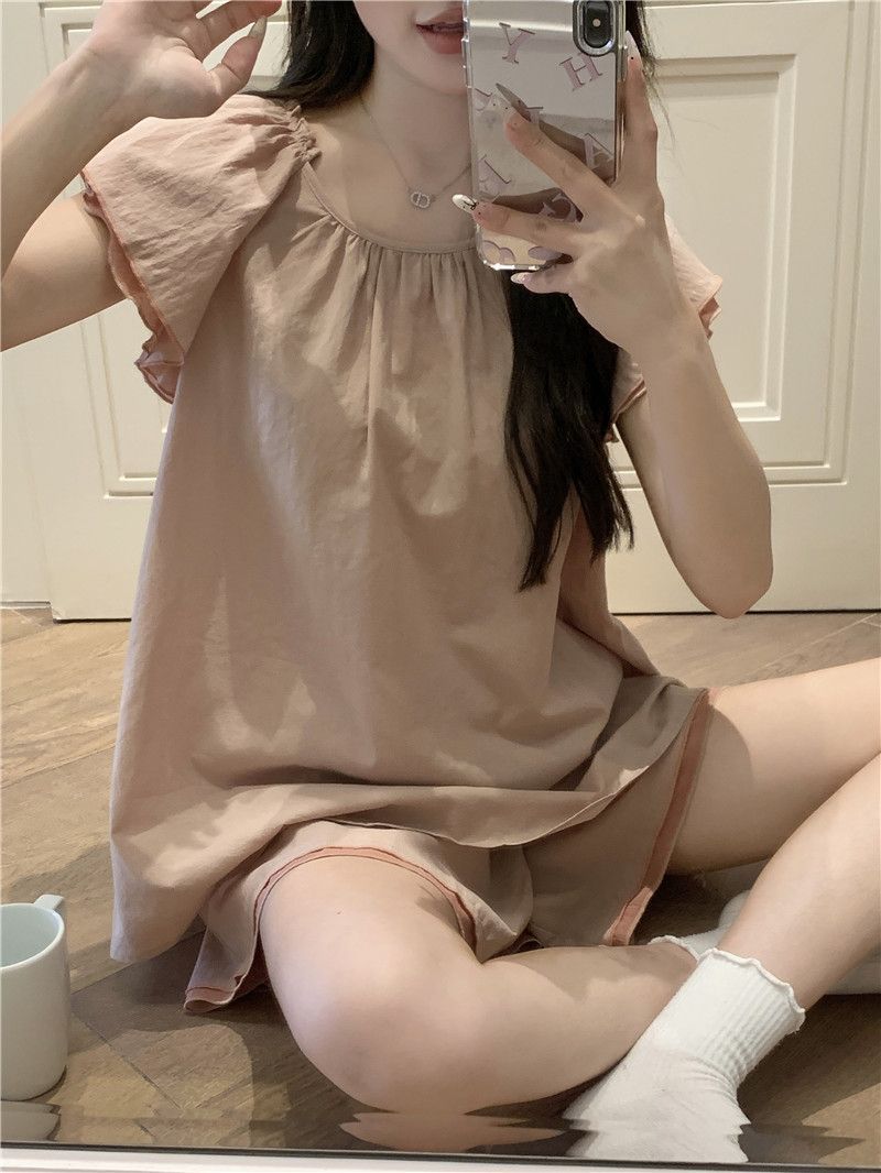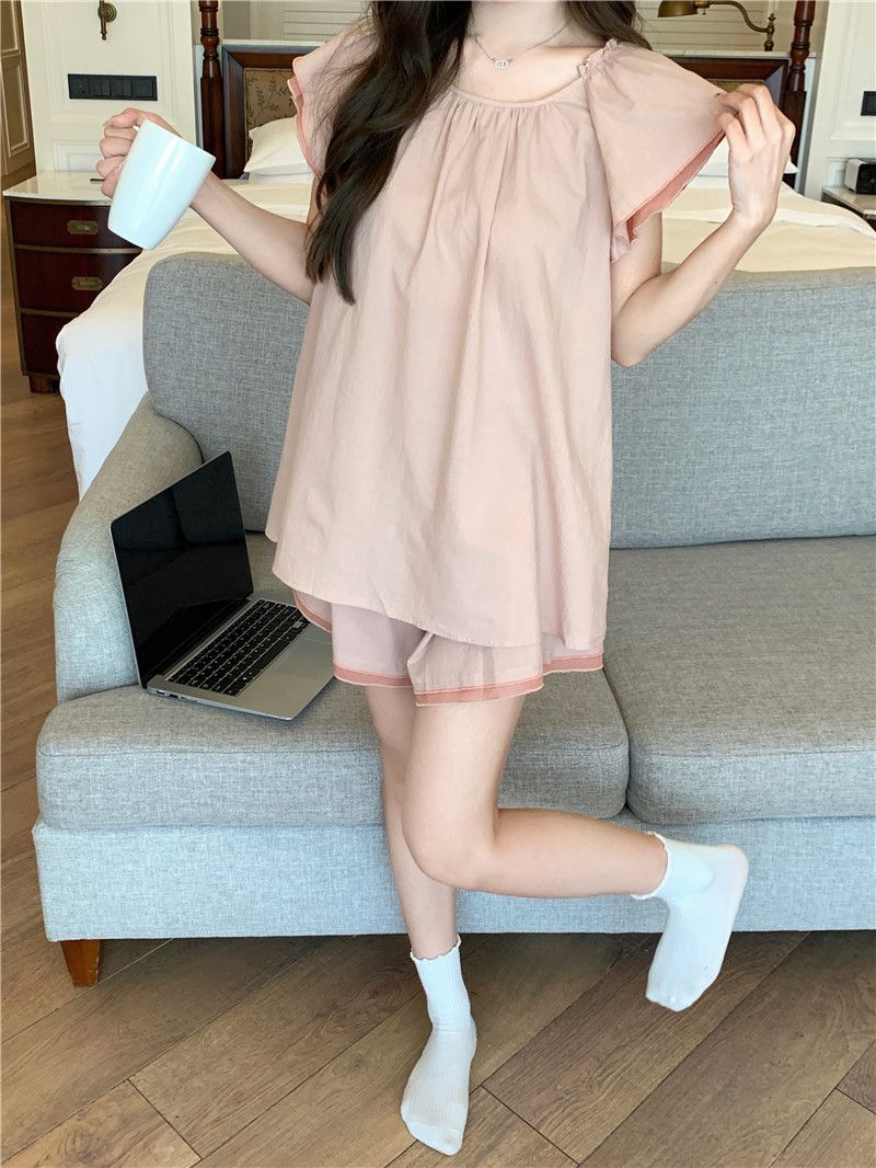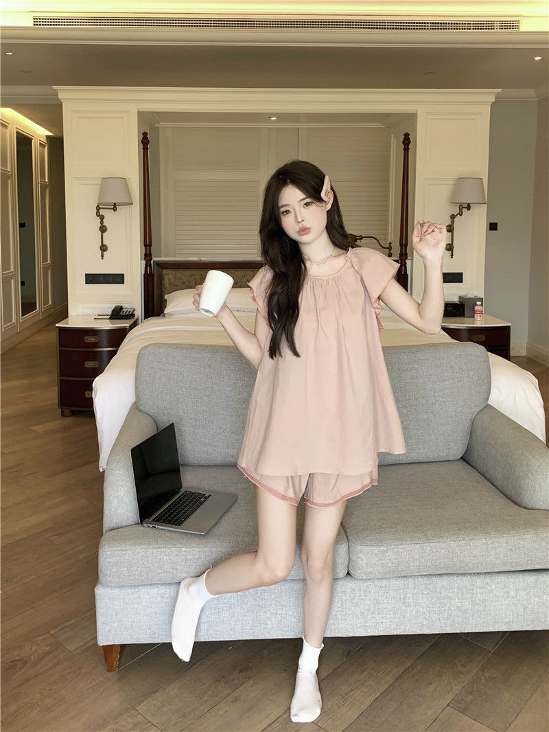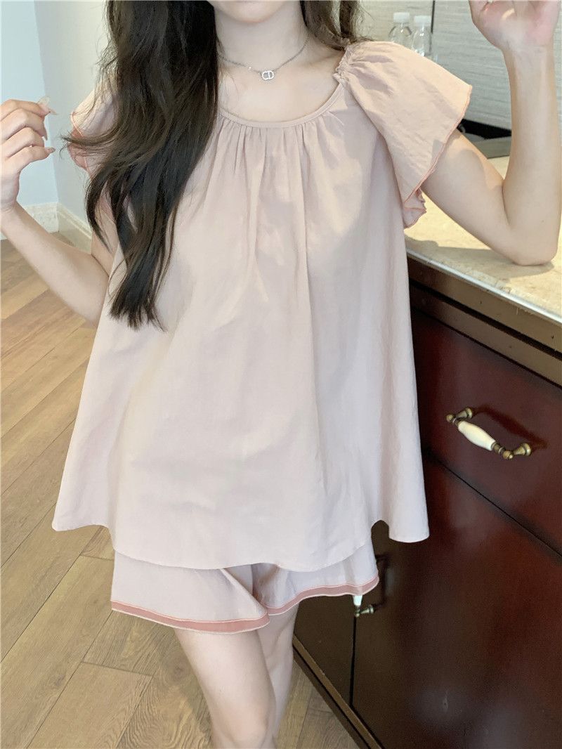 短袖短裤网红夏季新款ins风简约甜美少女纯色睡衣夏天家居服套装