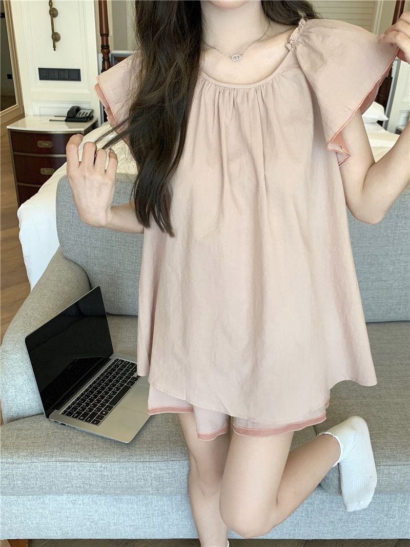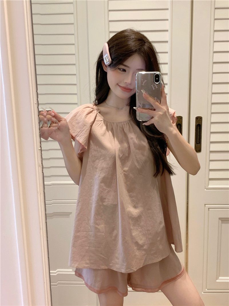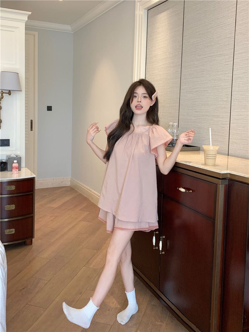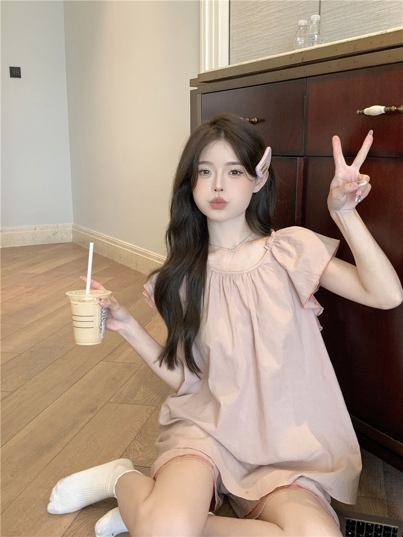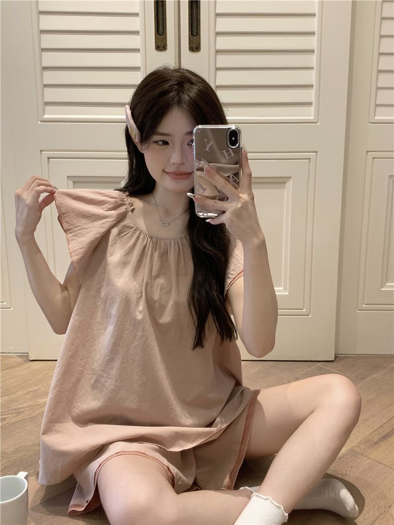 短袖短裤网红夏季新款ins风简约甜美少女纯色睡衣夏天家居服套装