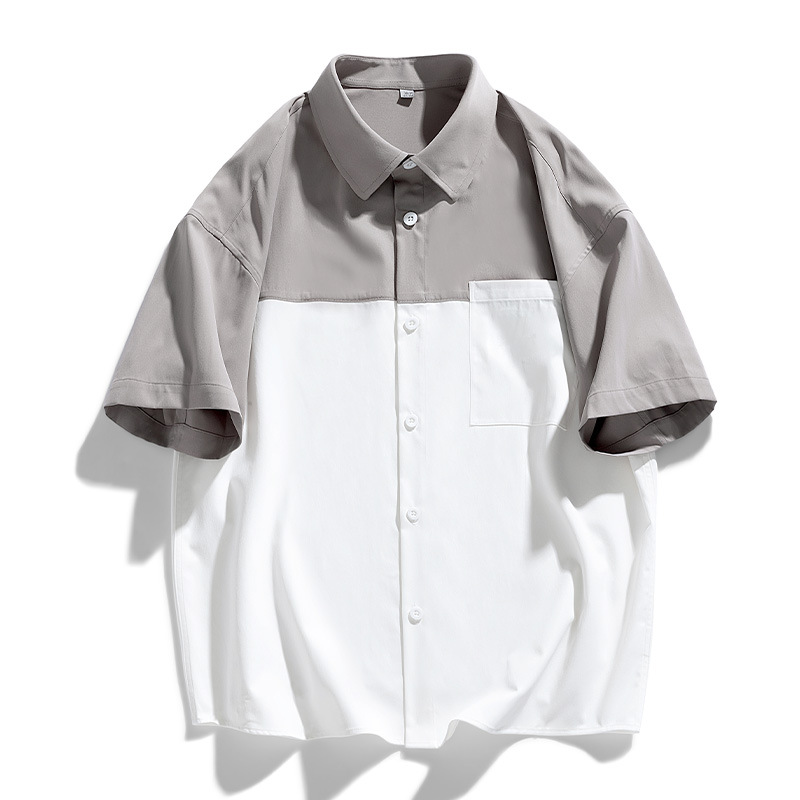 2025日系拼接短袖衬衫男士百搭休闲时尚休闲宽松上衣男装