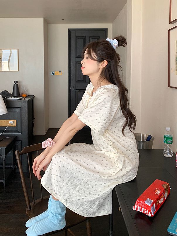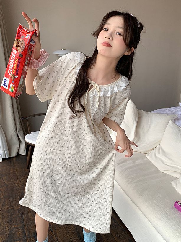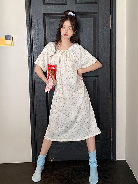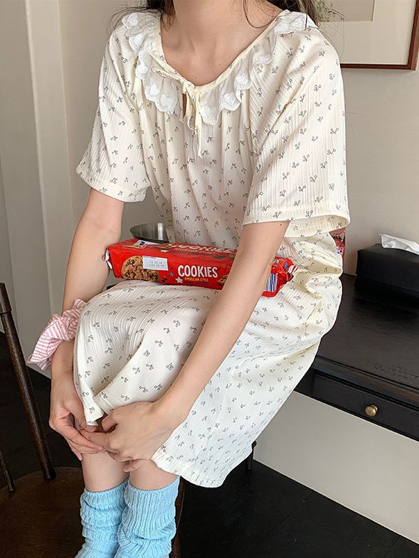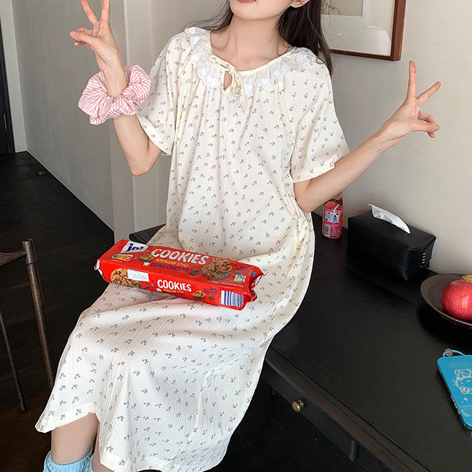 年新款睡裙女夏季蕾丝花边碎花夏季短长中长款薄款睡衣家居服