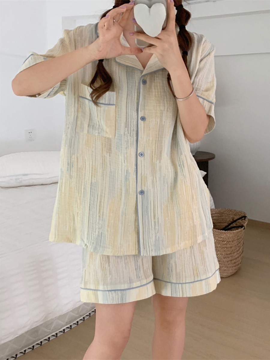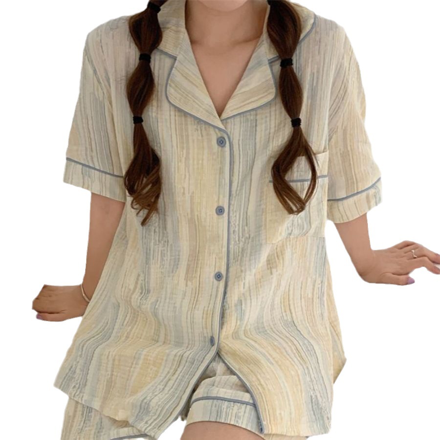 日系简约ins高级睡衣女夏季新款网红少女短袖短裤家居服两件套装