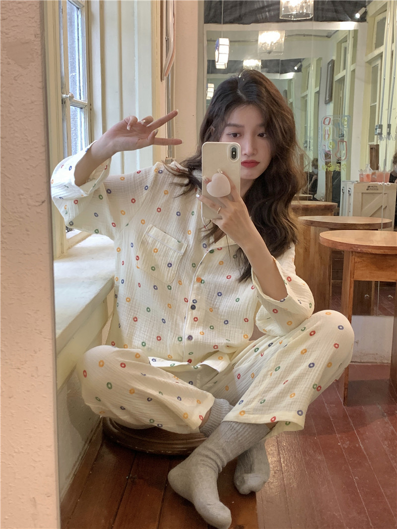 新款网红ins风春秋季睡衣女长袖甜美学生可外穿家居服套装