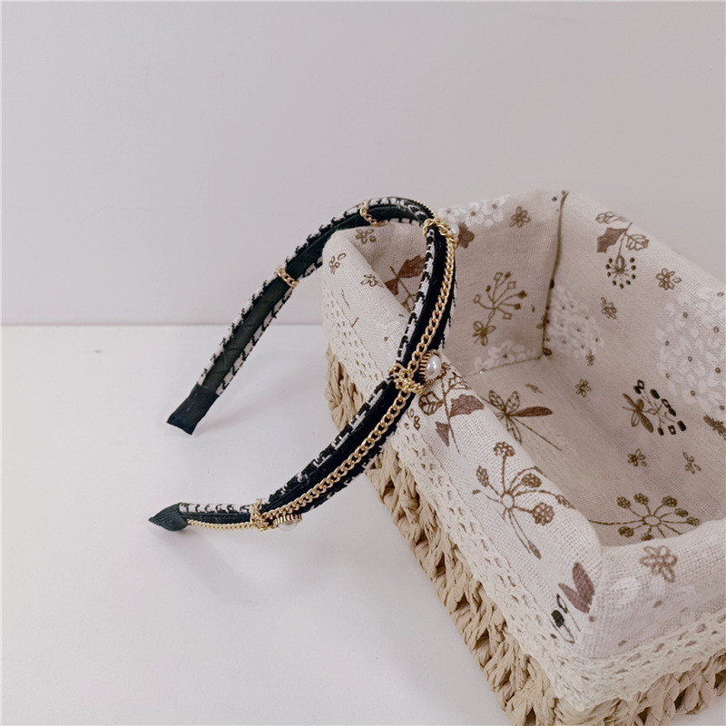 法式少女珍珠链条发箍网红新款简约气质头箍黑白格高级感发卡发饰
