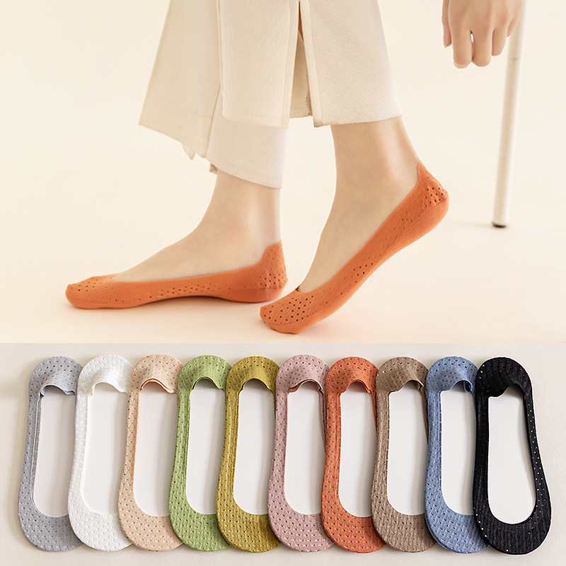 糖果色袜子女隐形袜网孔透气后跟硅胶不掉跟短袜防滑冰丝船袜