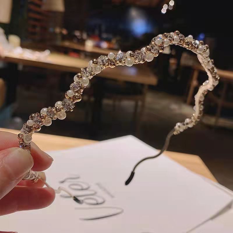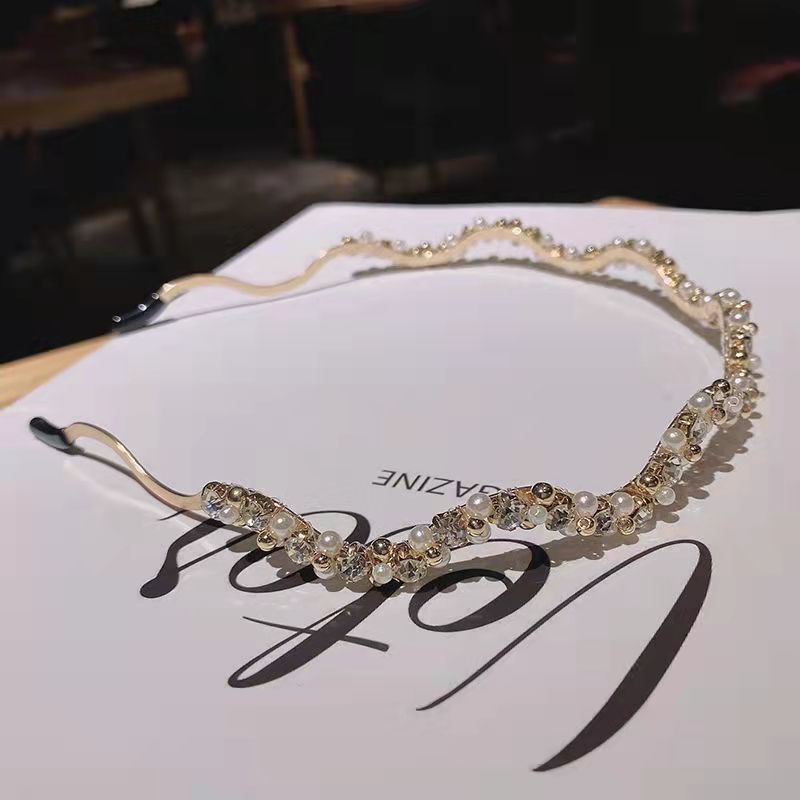 韩国东大门珍珠波浪水钻发箍法式优雅头箍宴会发卡头箍压发头饰