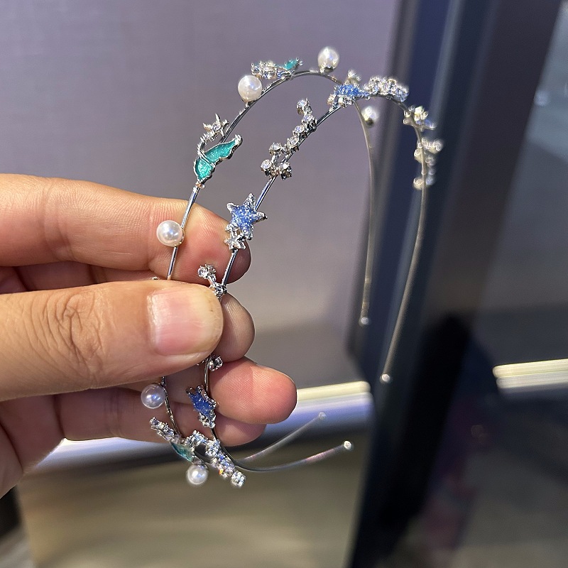 夏季春游新款少女细发箍海边镶嵌珍珠星星鱼尾头箍发饰头饰发卡