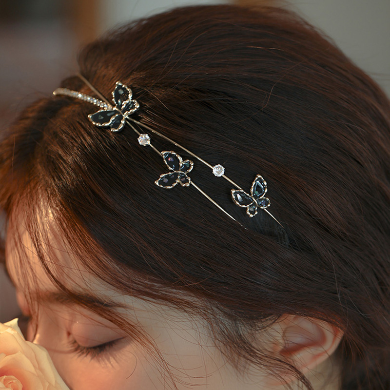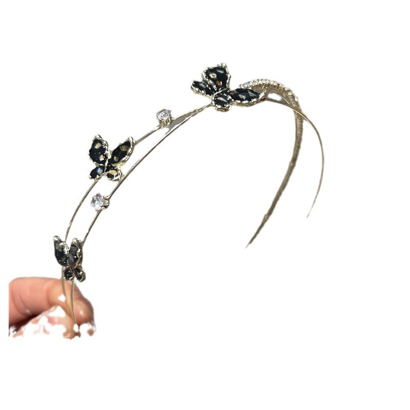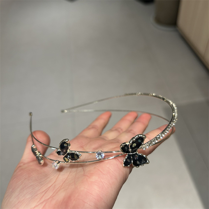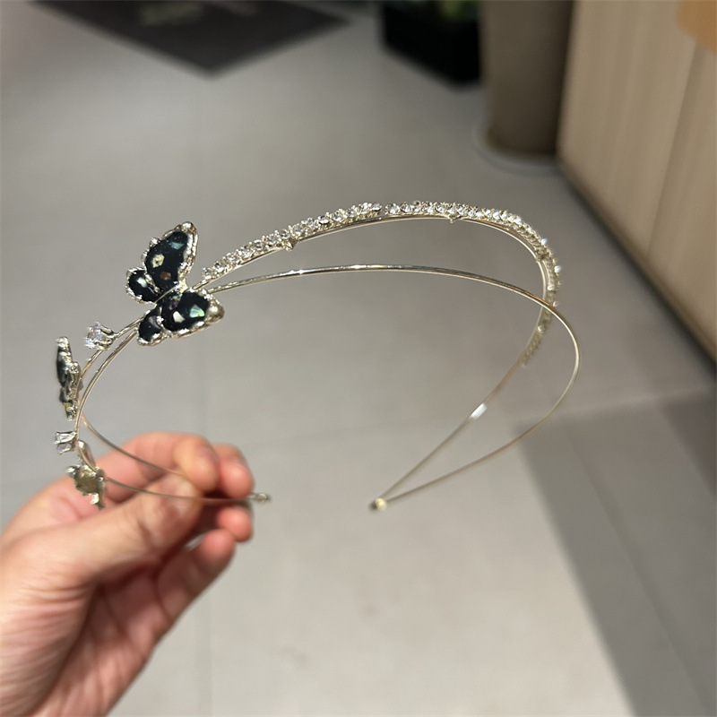 韩式复古滴油双层蝴蝶发箍交叉锆石水钻法式森系头箍发卡头饰
