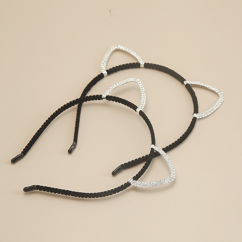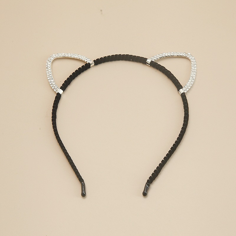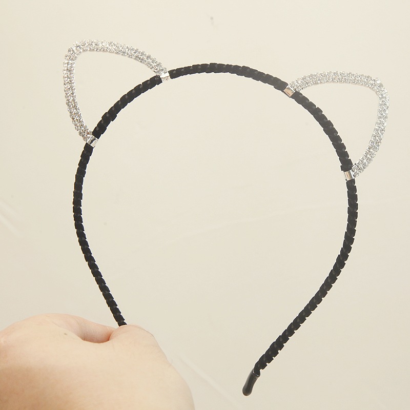 韩版可爱超萌猫耳朵头扣头箍合金发饰镶钻细发卡水钻发箍头饰