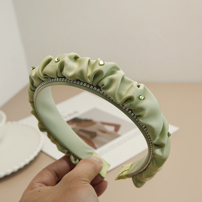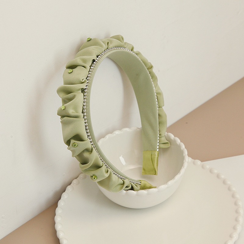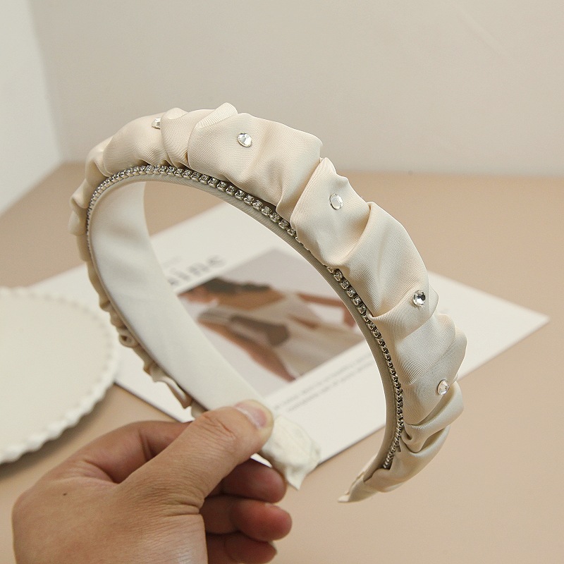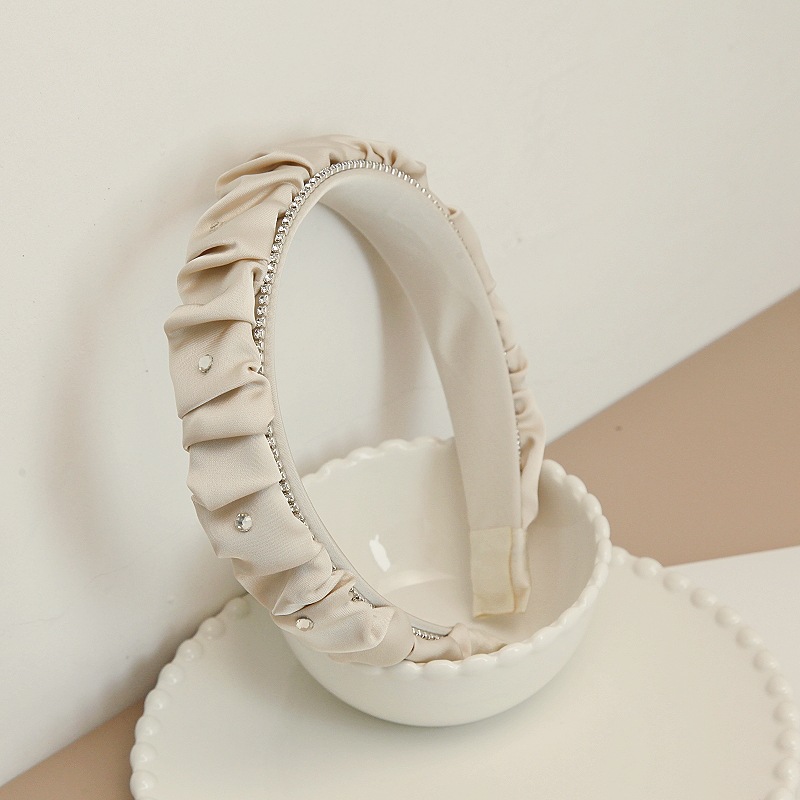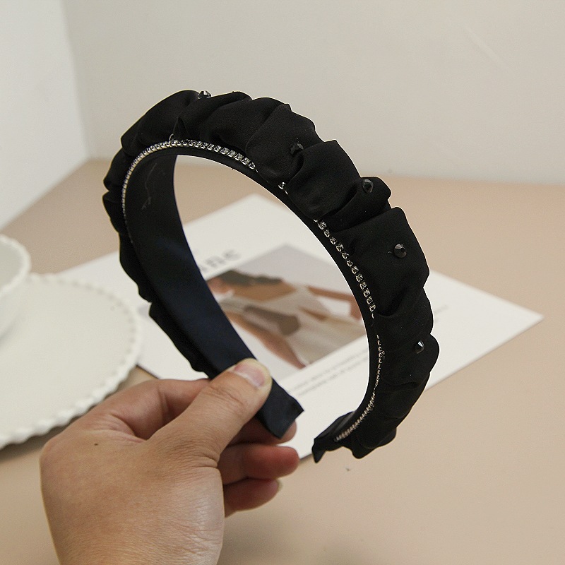 韩版褶皱布艺水钻发箍高颅顶宽边头箍高级感气质大肠发窟洗脸发捆