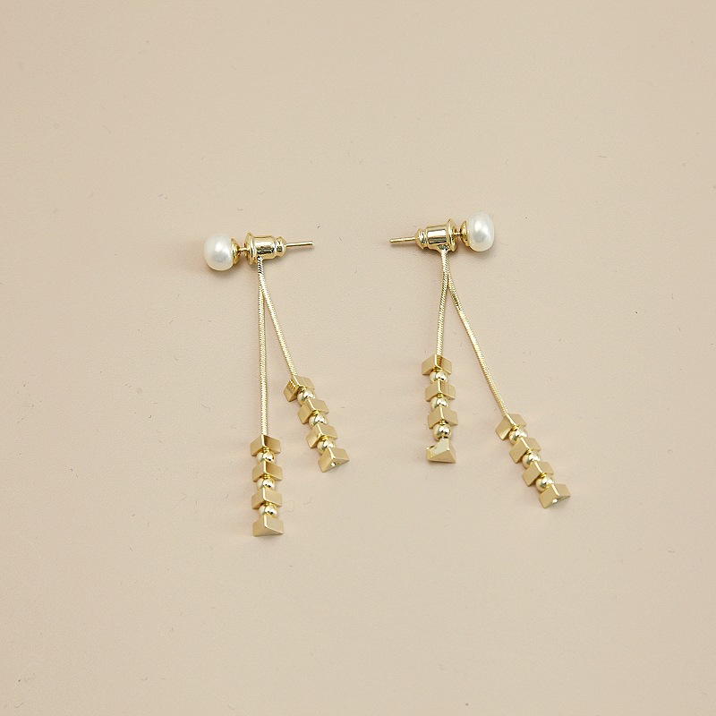 镀真金淡水珍珠流苏耳钉新款S925银针轻奢耳环时尚耳饰