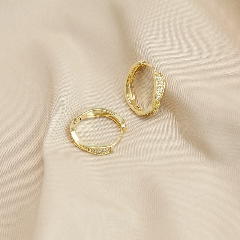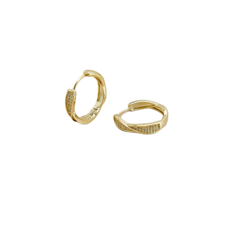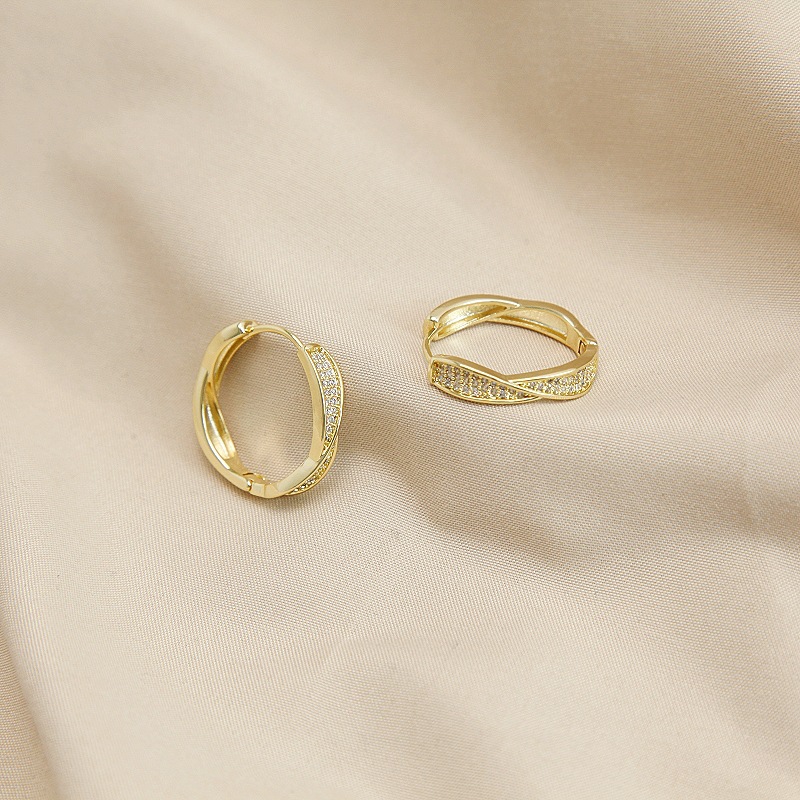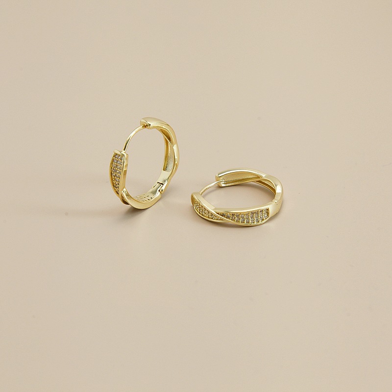 电镀真金S925微镶锆石麻花扭曲耳环潮轻奢小众高级感耳扣简约耳圈