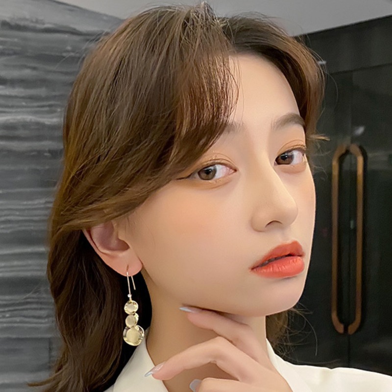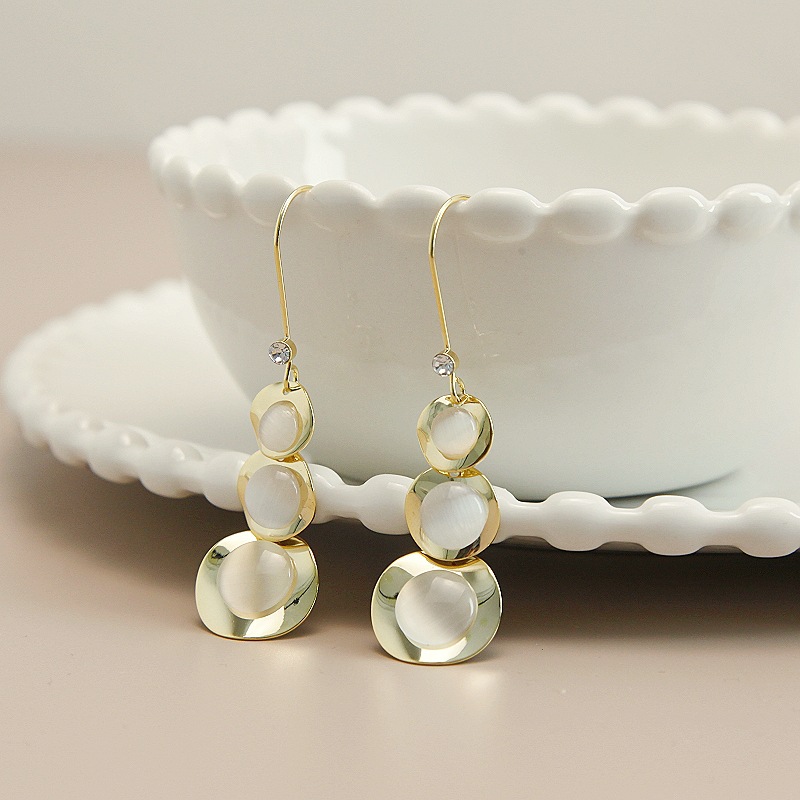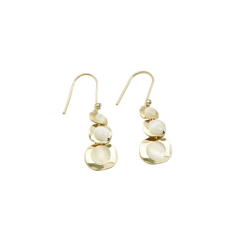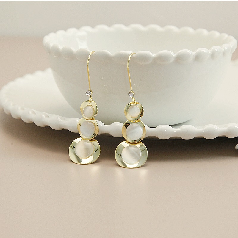 电镀真金S925银针圆形猫眼石流苏耳环新款轻奢耳挂高级感耳饰