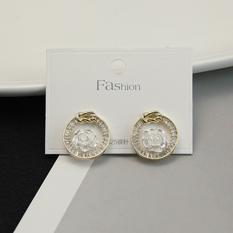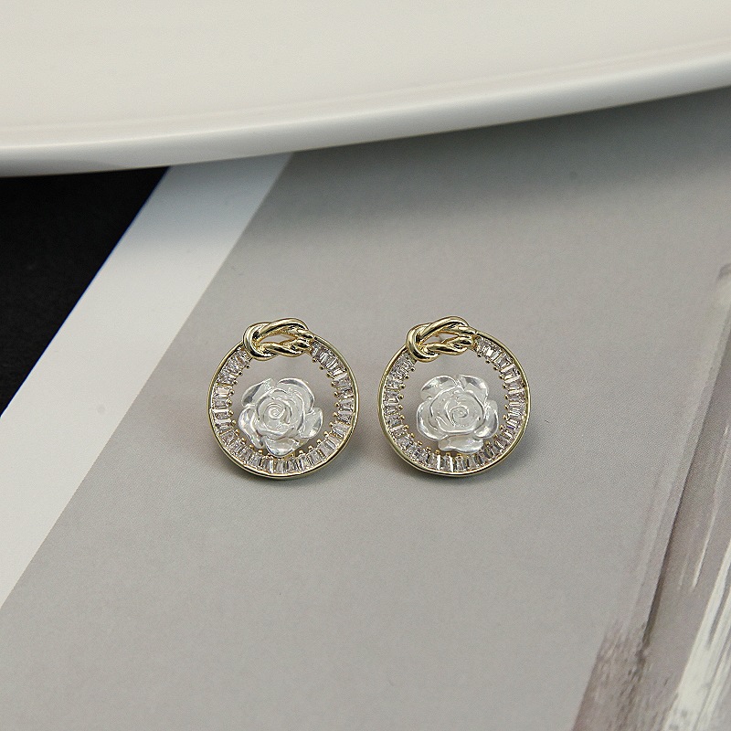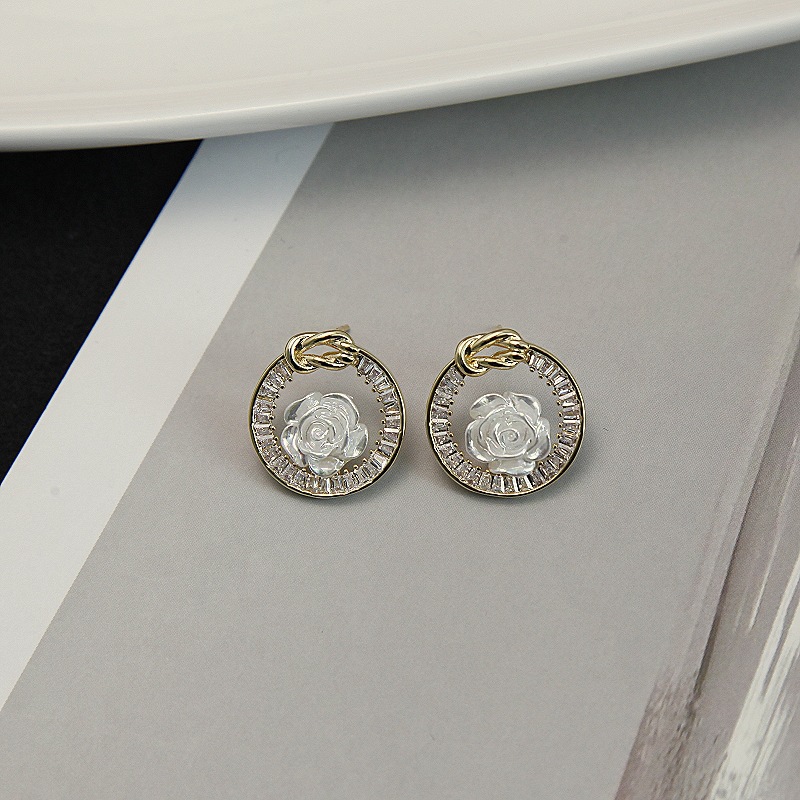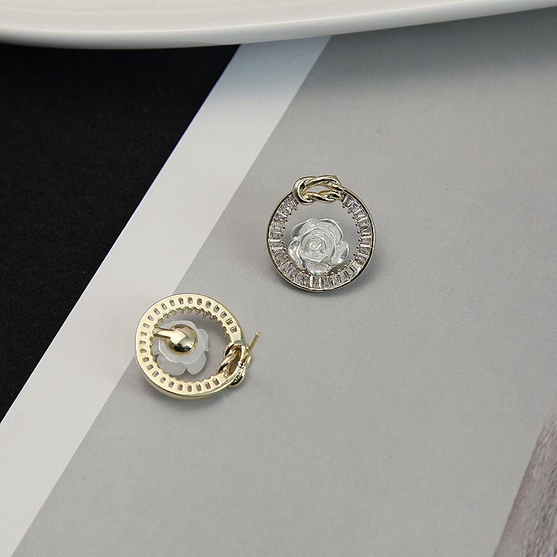 小众设计感山茶花耳环圆圈独特法式复古风耳饰气质百搭新款耳钉女