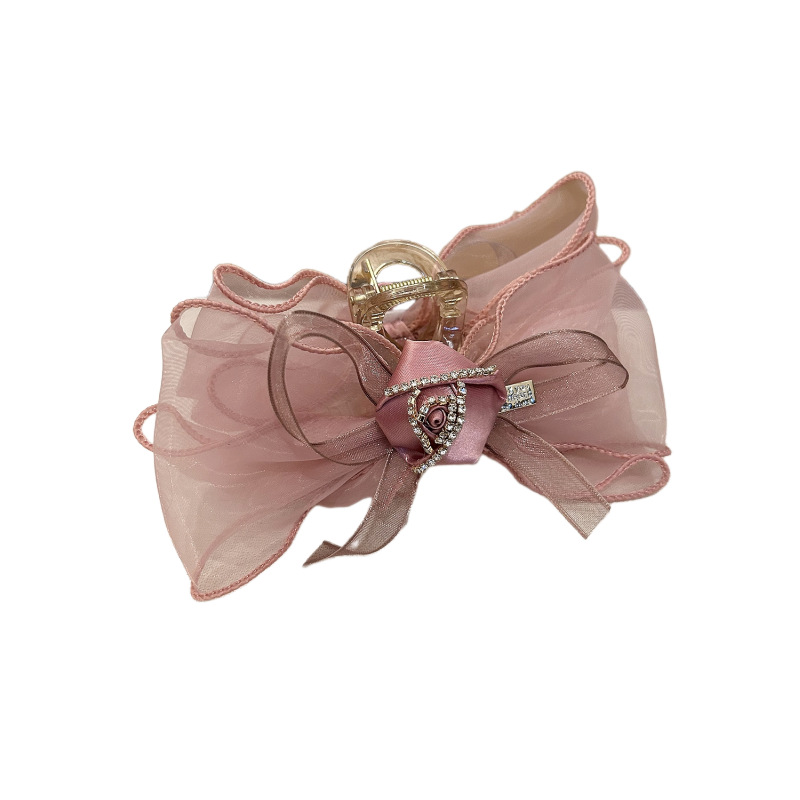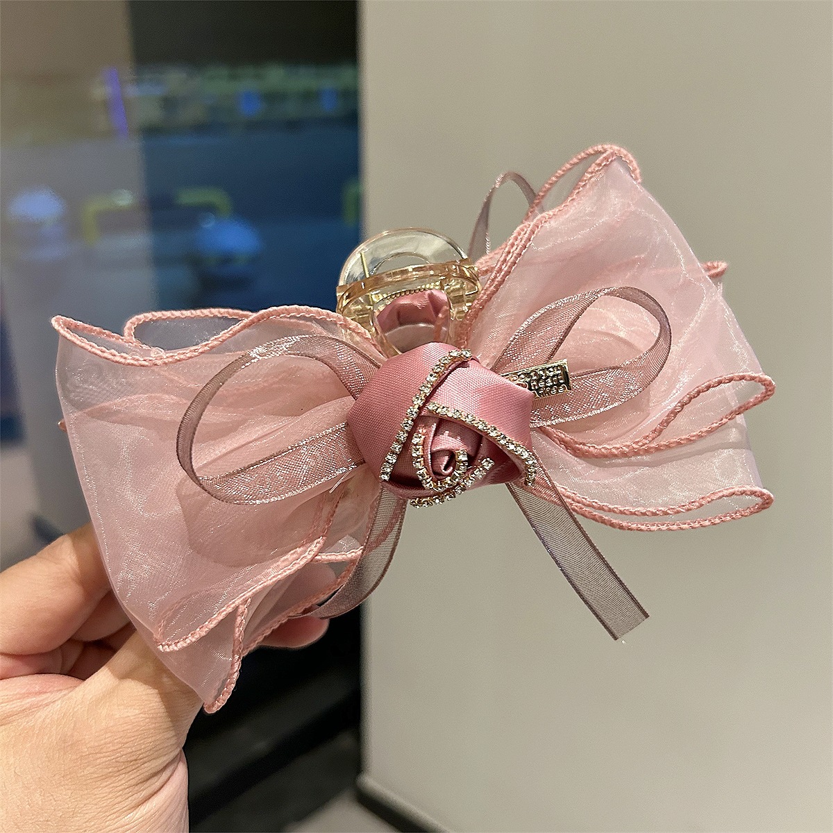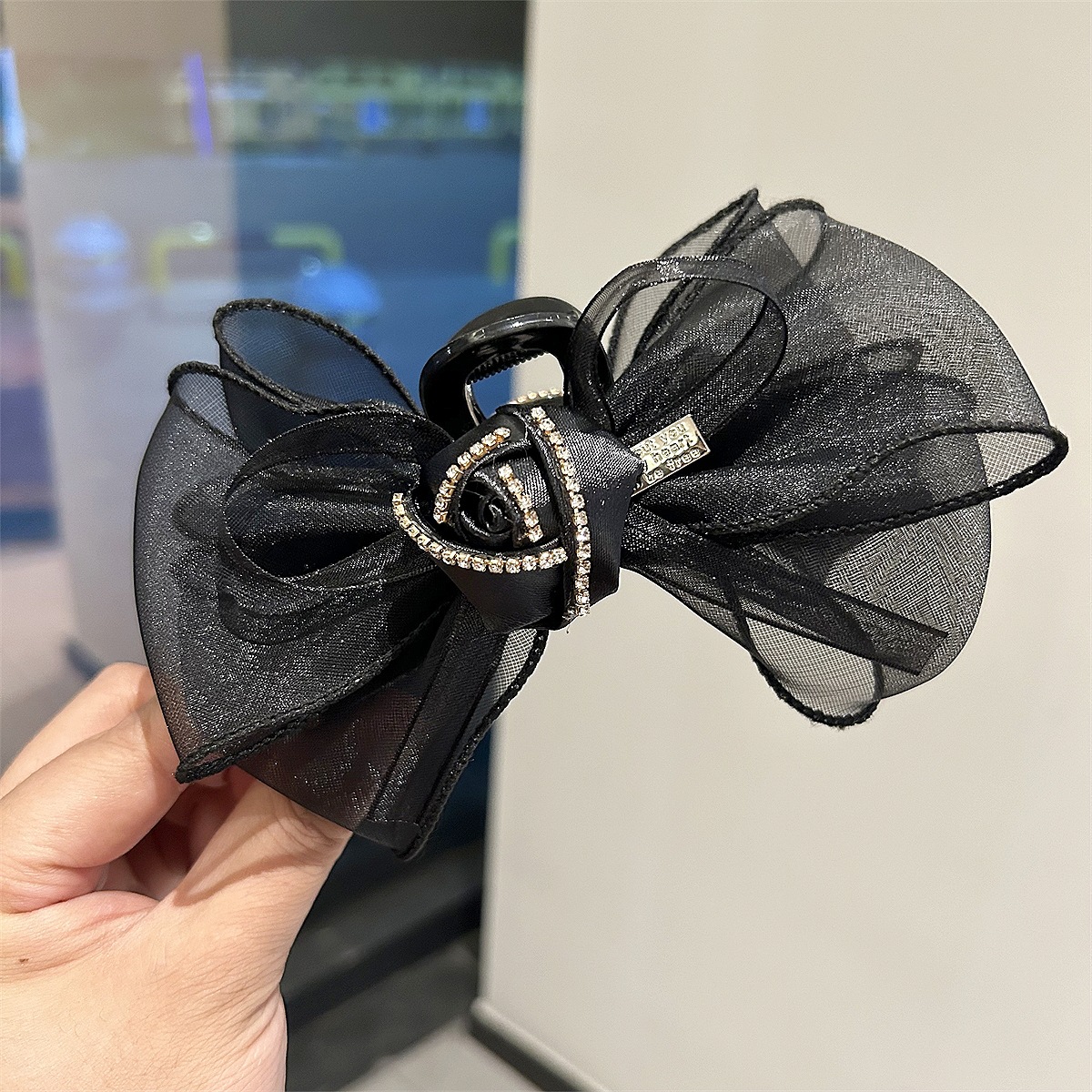韩版高级玫瑰花网纱抓夹女生后脑勺盘发发卡夹子仙美气质头饰
