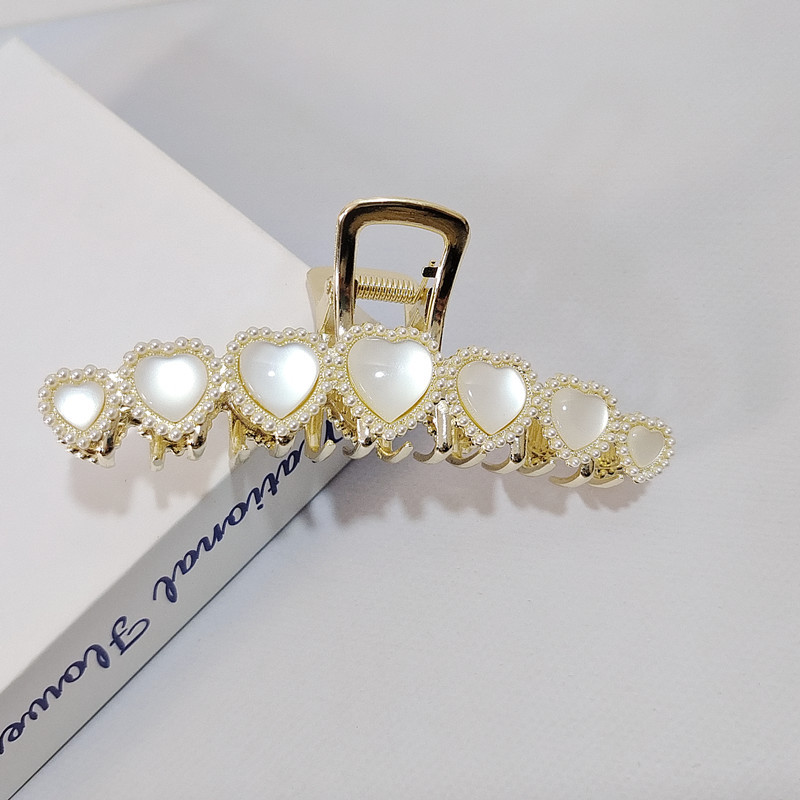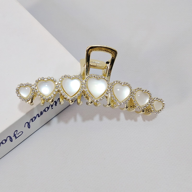 韩国东大门满钻猫眼石抓夹优雅气质桃心后脑勺盘发鲨鱼夹子发饰潮