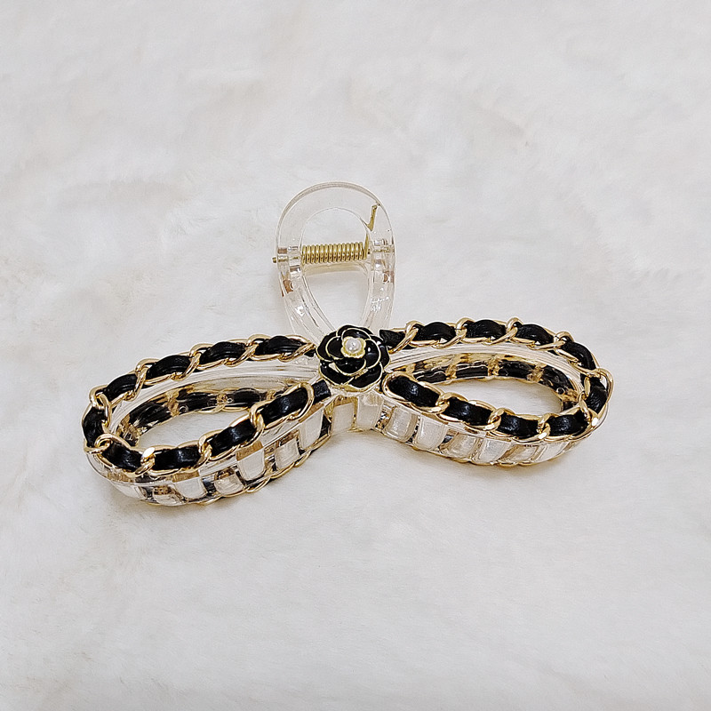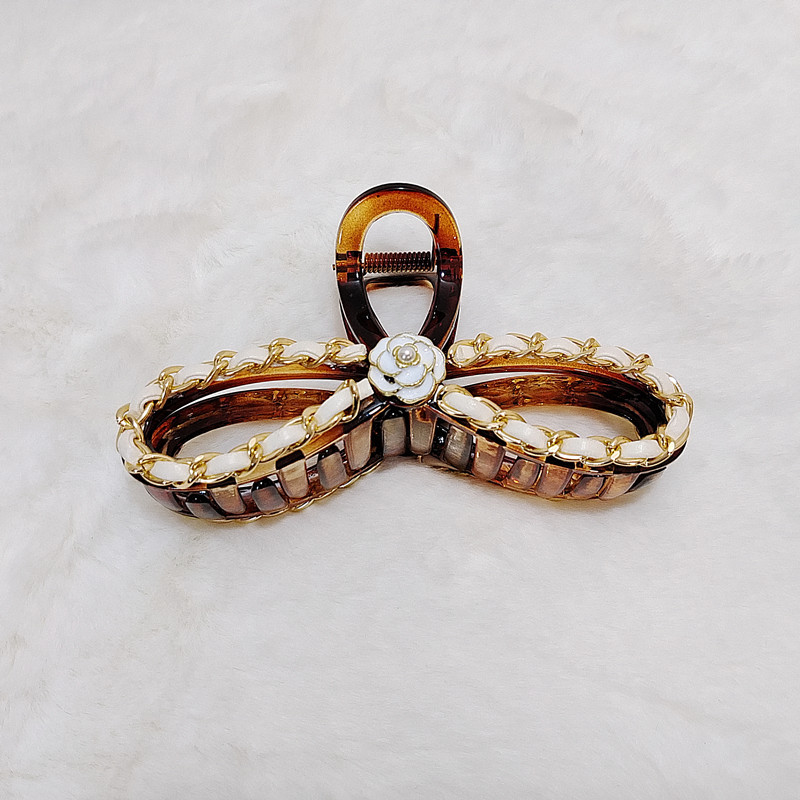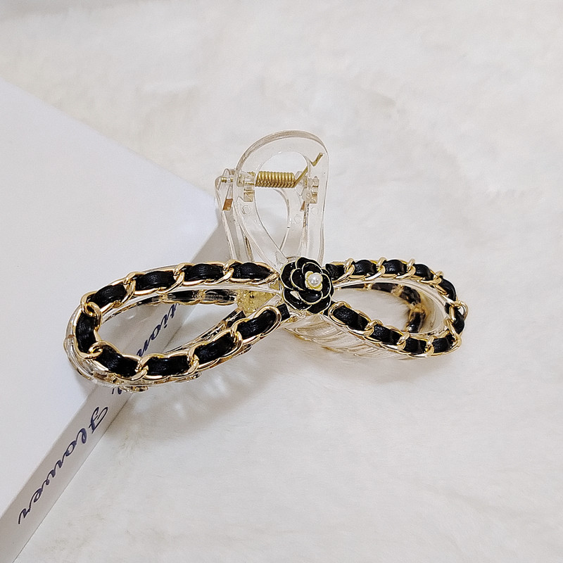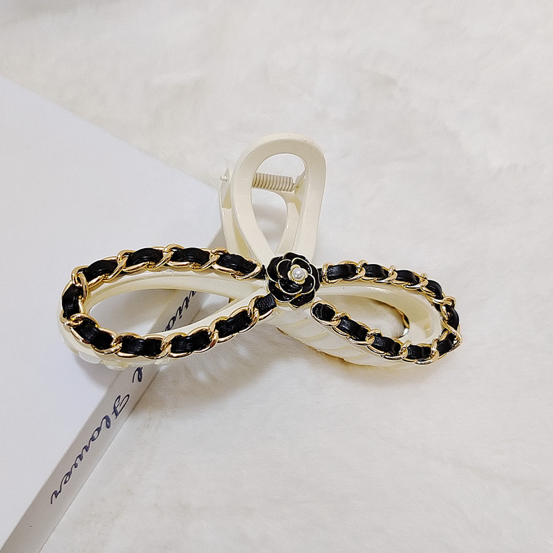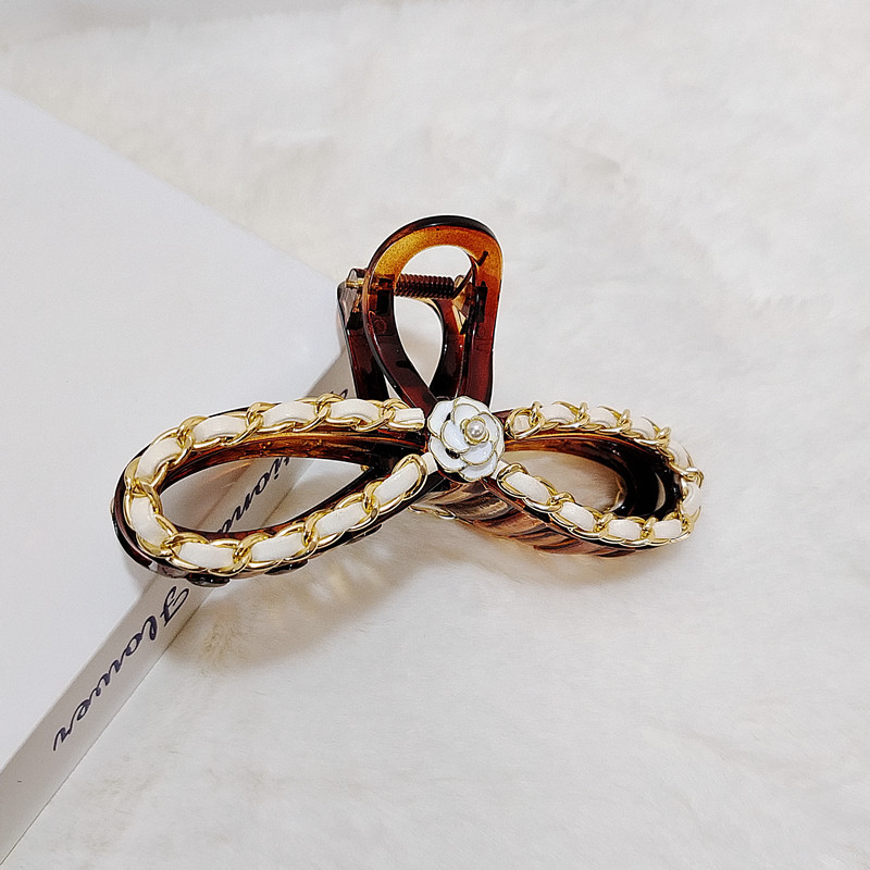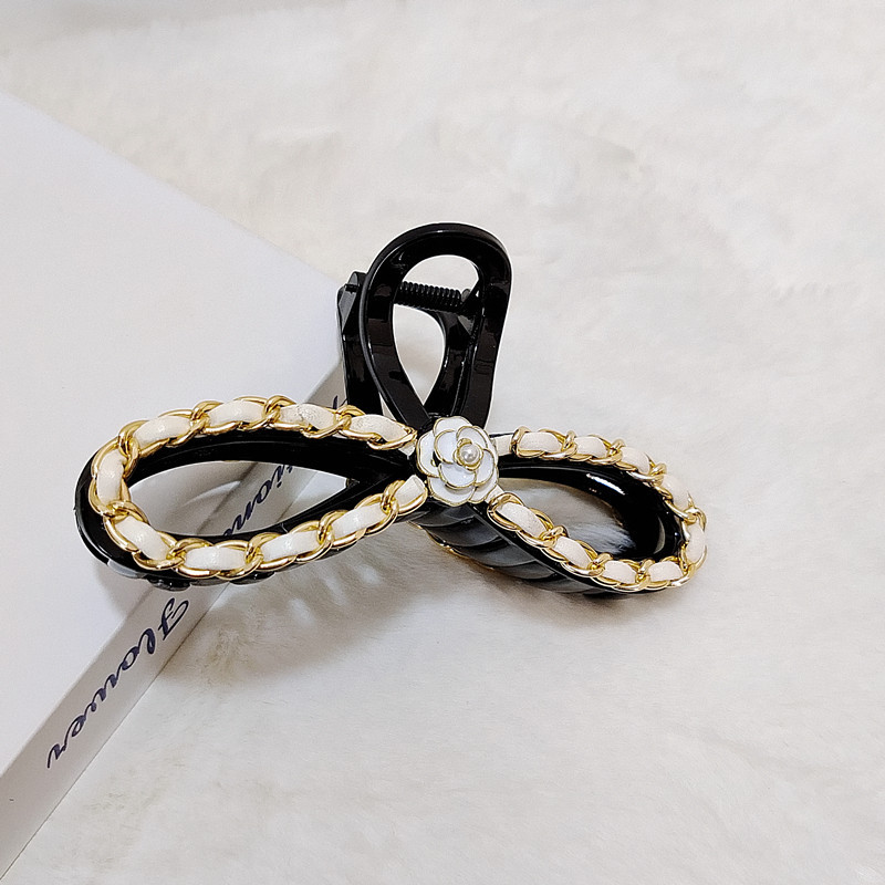 韩国东大门大鲨鱼夹小香风山茶花加大抓夹后脑勺盘发抓链条高级感