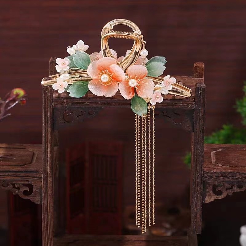 鲨鱼夹古风盘发抓夹女汉服头饰古装流苏发簪仙气发饰复古旗袍夹子