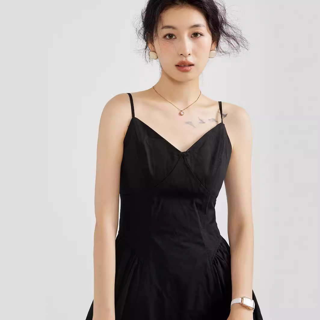 法式复古气质简洁设计收腰晚会礼服小黑裙吊带连衣裙X型