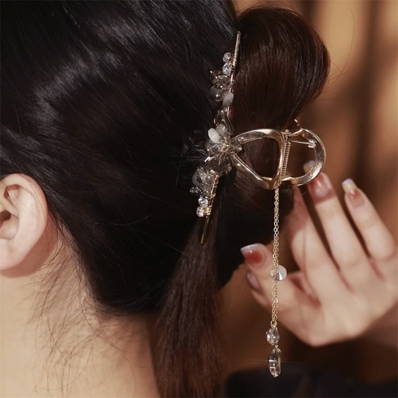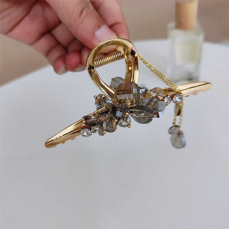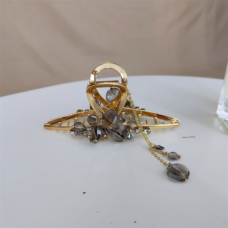 网红韩式手工编织诗意水晶大号抓夹后脑勺抓夹流苏盘发鲨鱼夹子潮