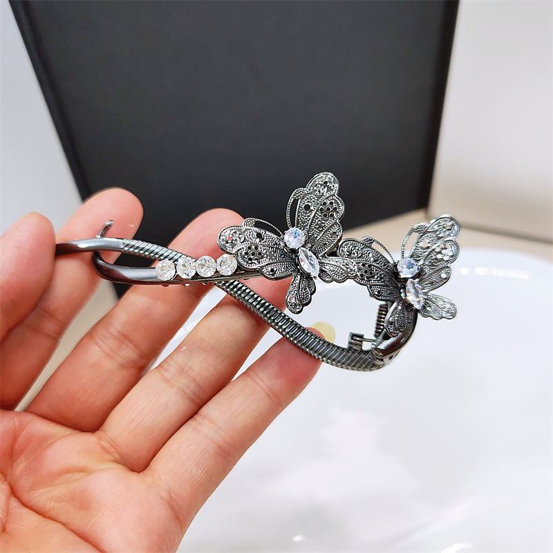新款复古蝴蝶扭扭夹高级感镶钻锆石发夹后脑勺盘发夹女发饰女