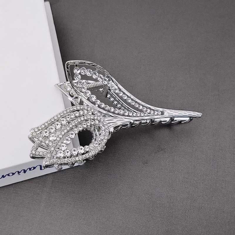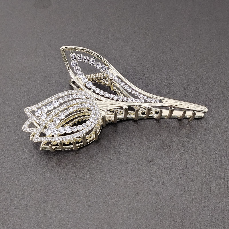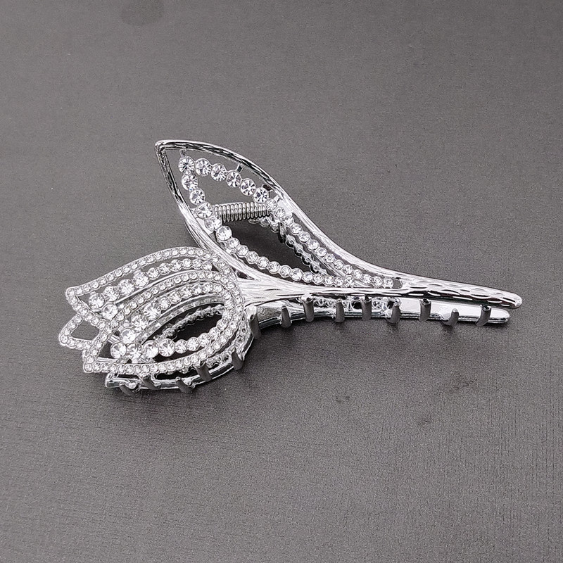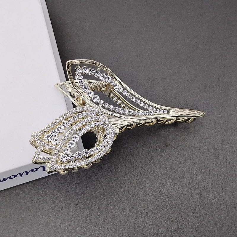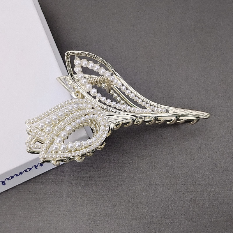 高级感郁金香抓夹女大号珍珠水钻发夹后脑勺鲨鱼夹发量多花朵发饰