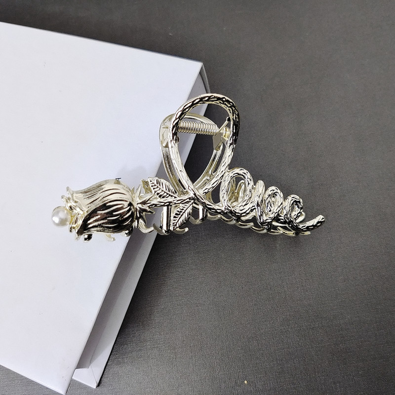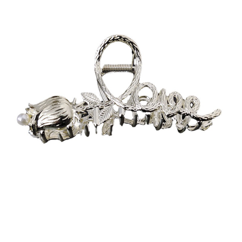 新款高级感金属玫瑰花抓夹大号鲨鱼夹气质小众设计款女优雅发夹