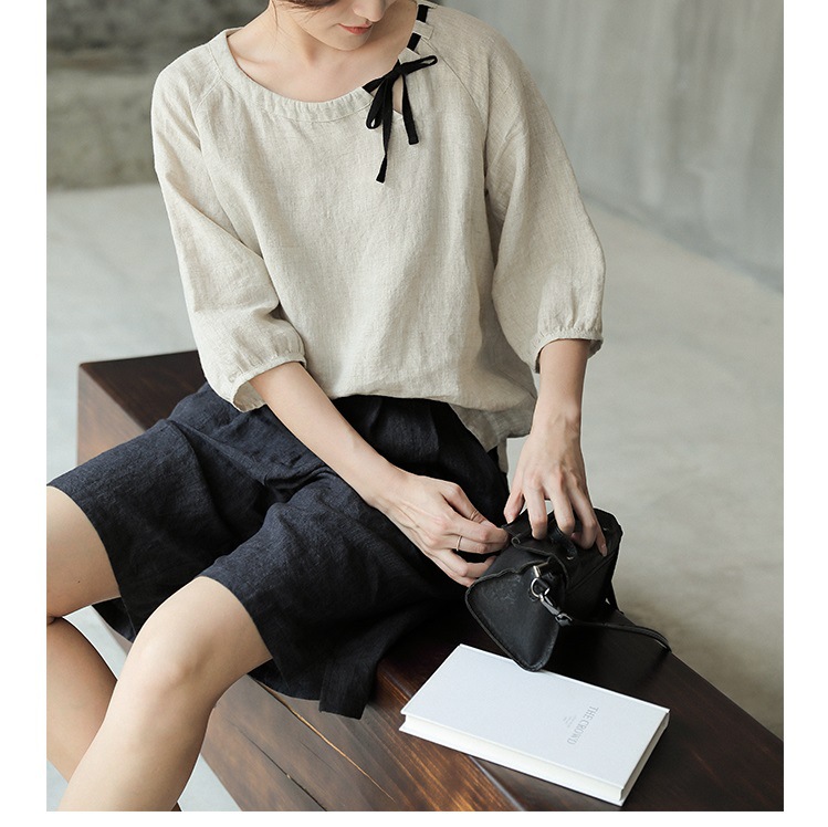 伊善 撞色小优雅 法国雨露短款复古上衣短袖t恤女装夏季