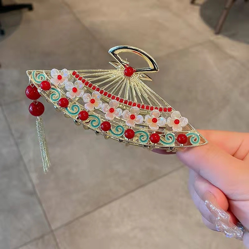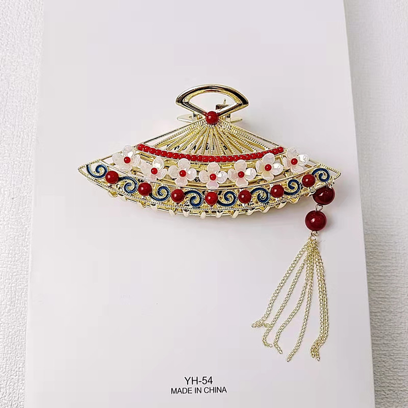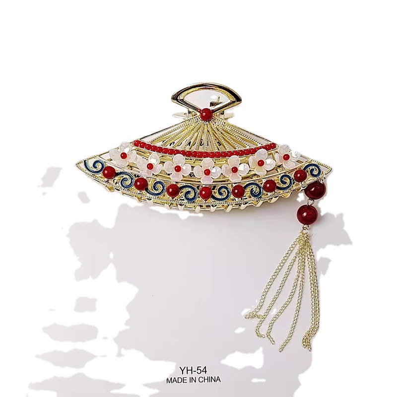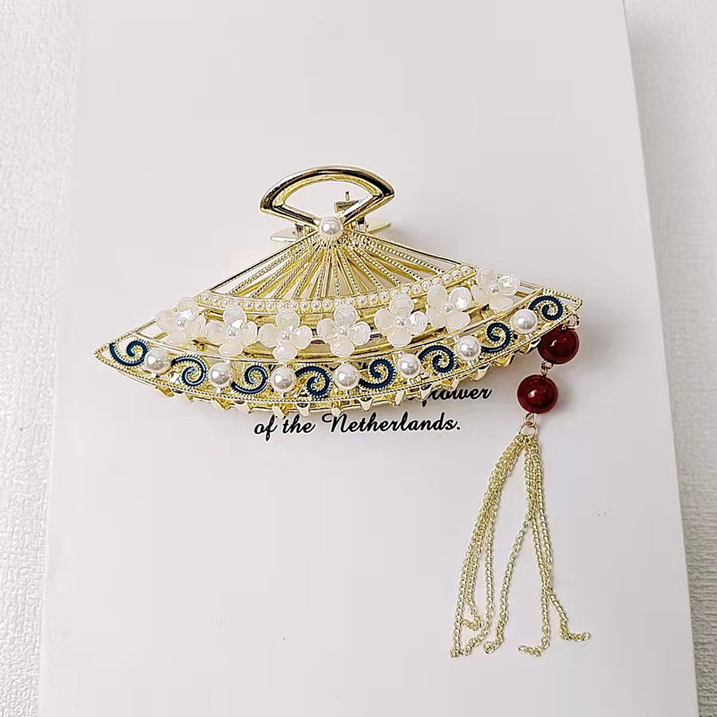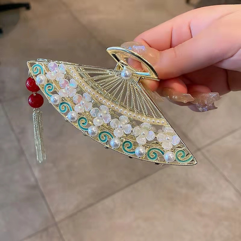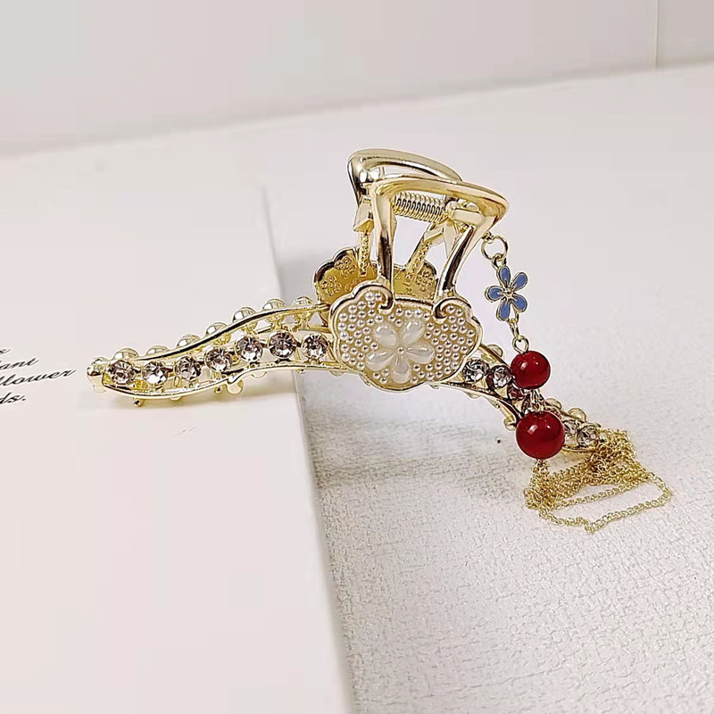 国风高级感珍珠新年抓夹流苏女大号后脑勺发夹头饰夹子发卡鲨鱼夹