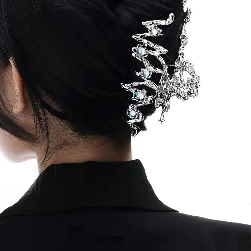液态金属抓夹月蚀系列心率图流线风抓夹鲨鱼夹百搭小众新款发饰