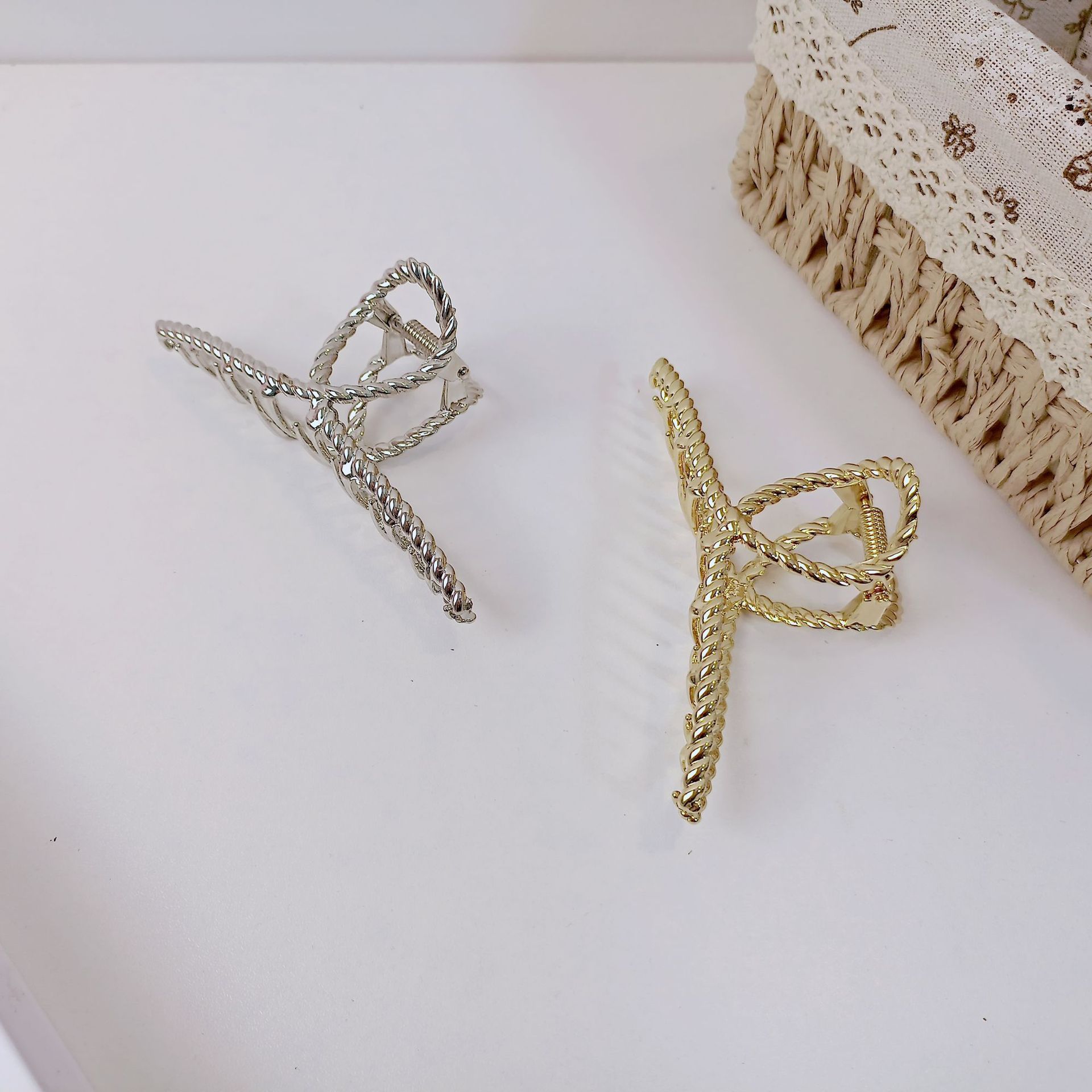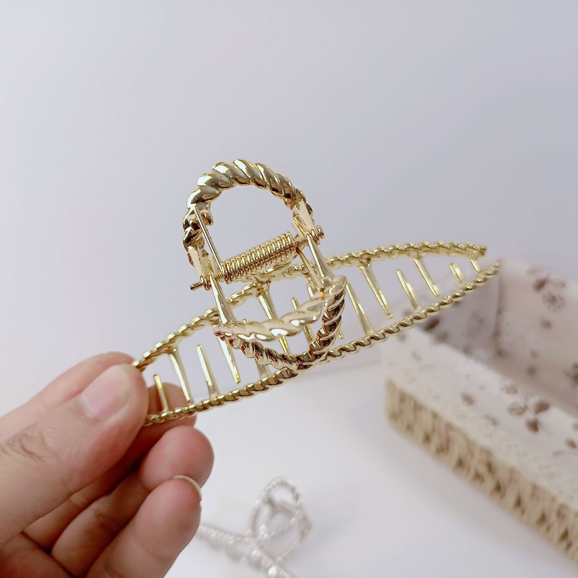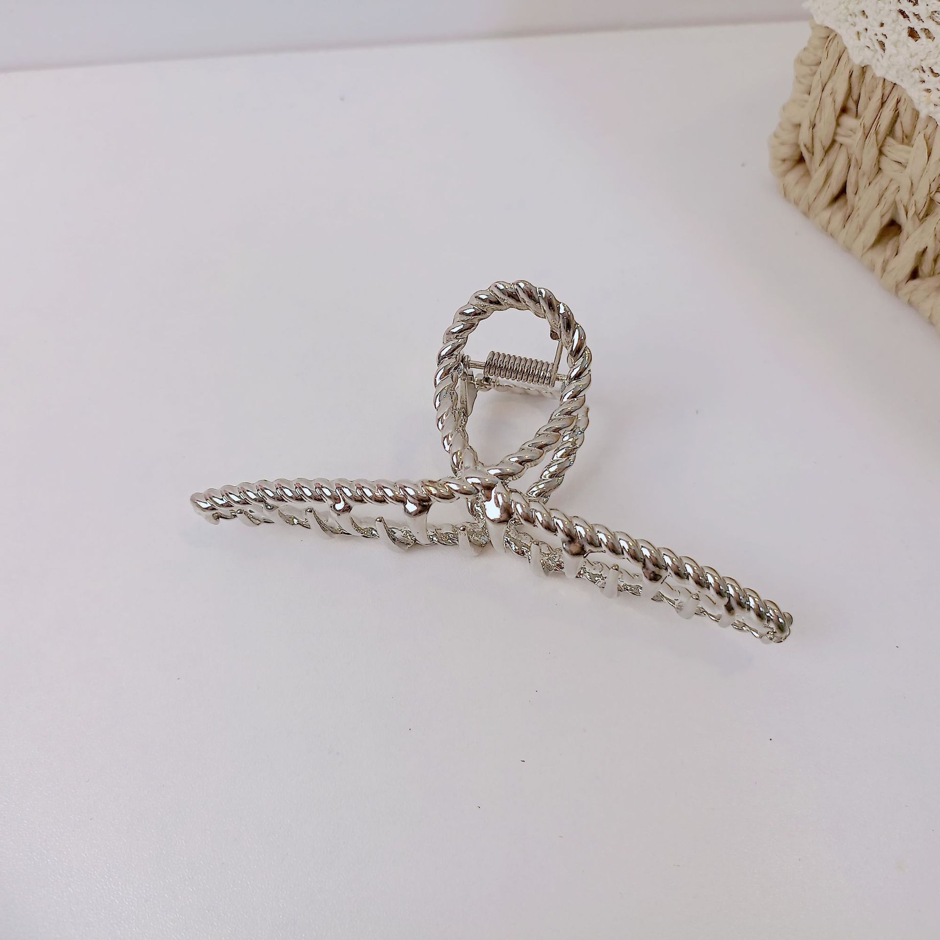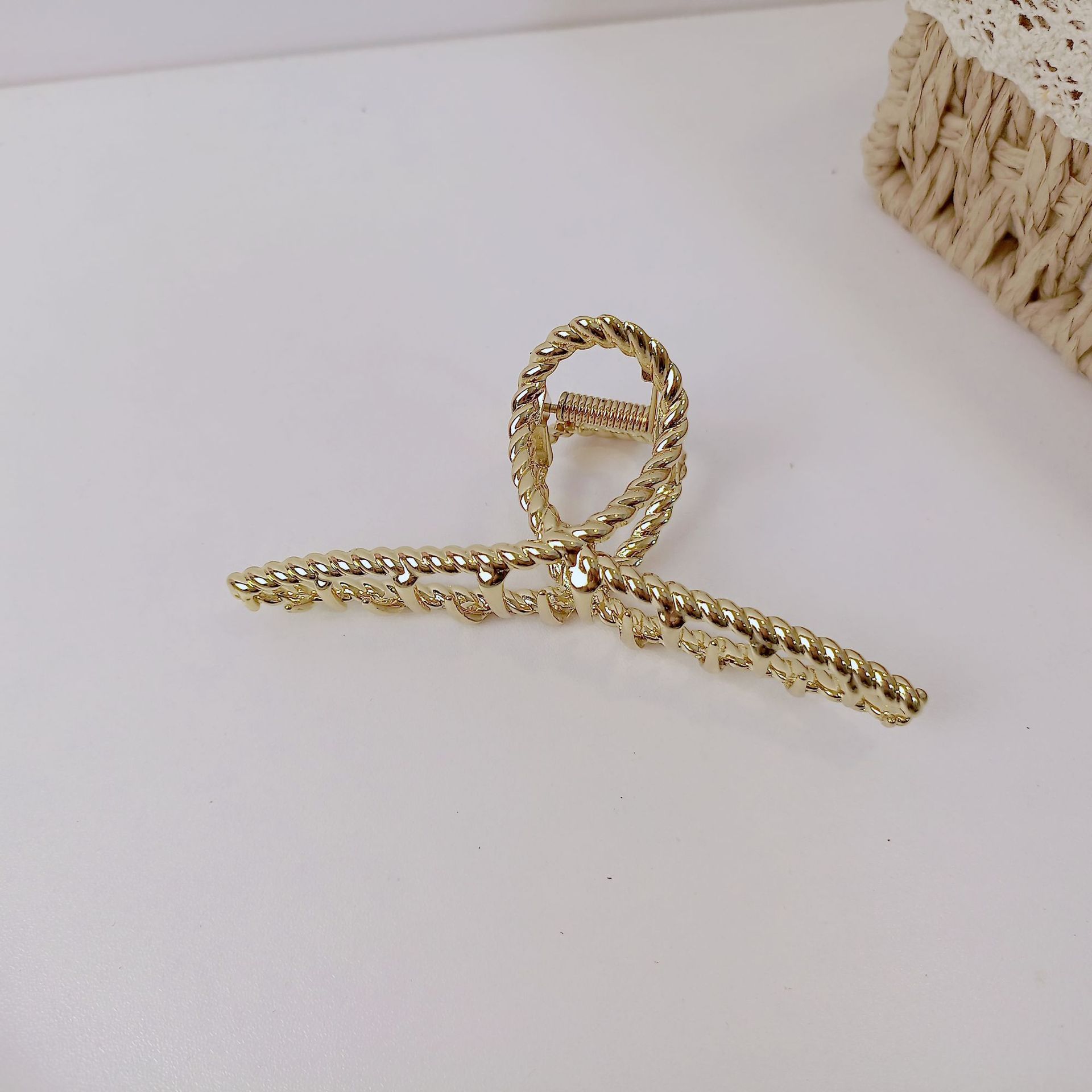 韩国东大门合金麻花抓夹少女亮漆边夹时尚发夹简约金属盘发马尾夹