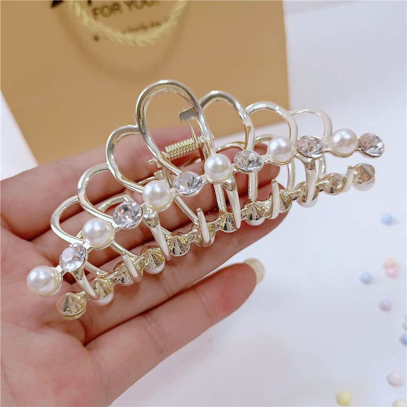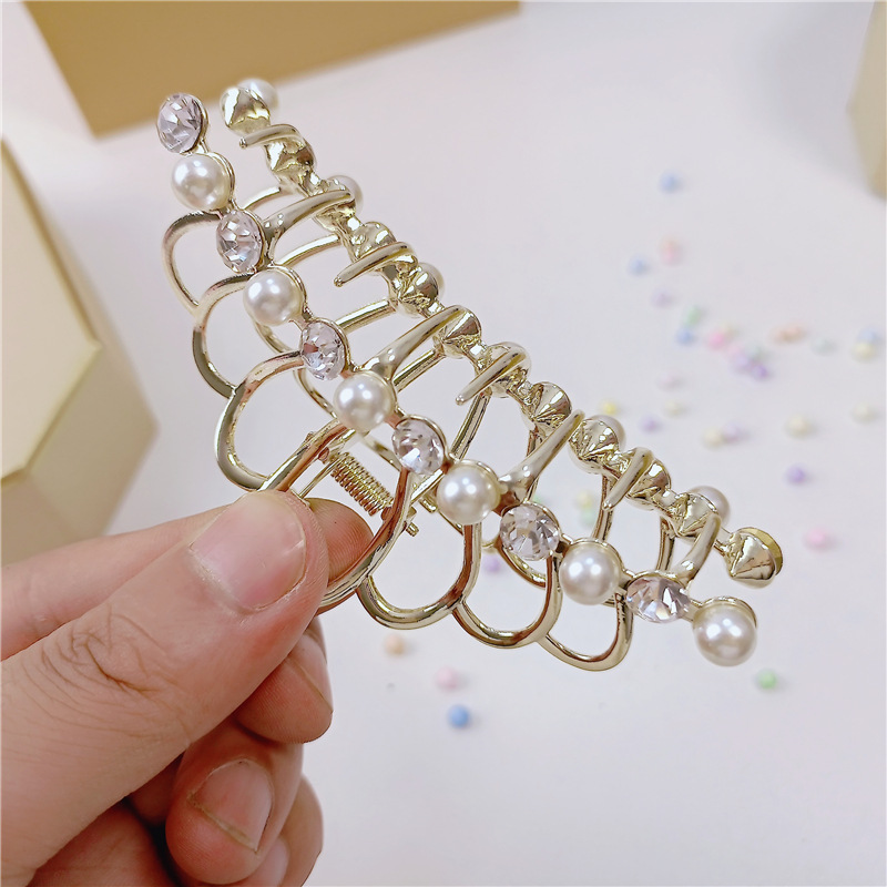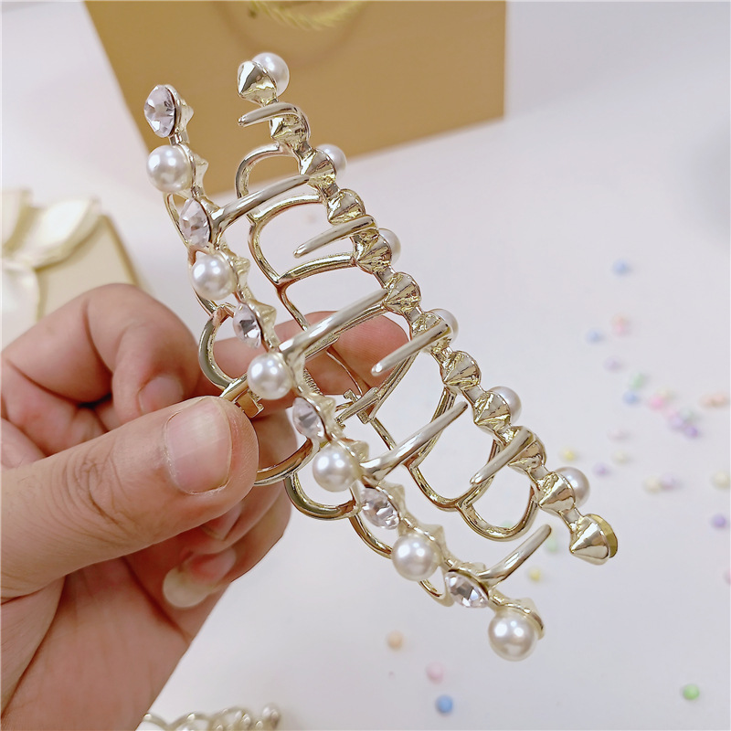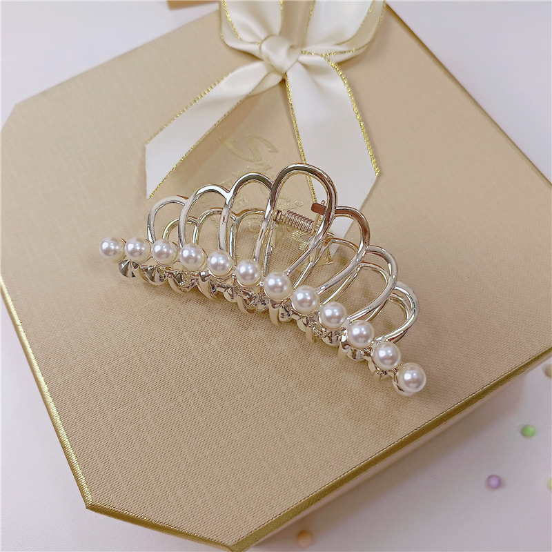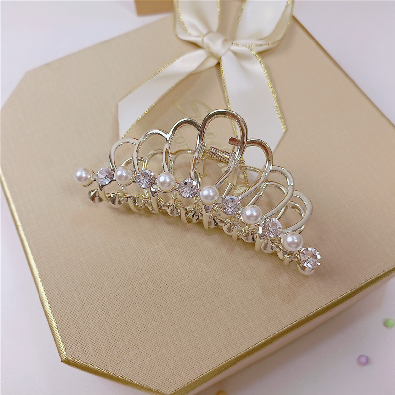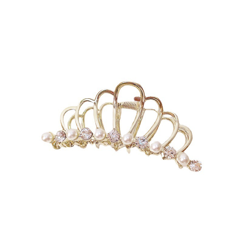 夏季珍珠金属皇冠抓夹大号高级感韩系后脑勺鲨鱼夹发饰女半扎发抓