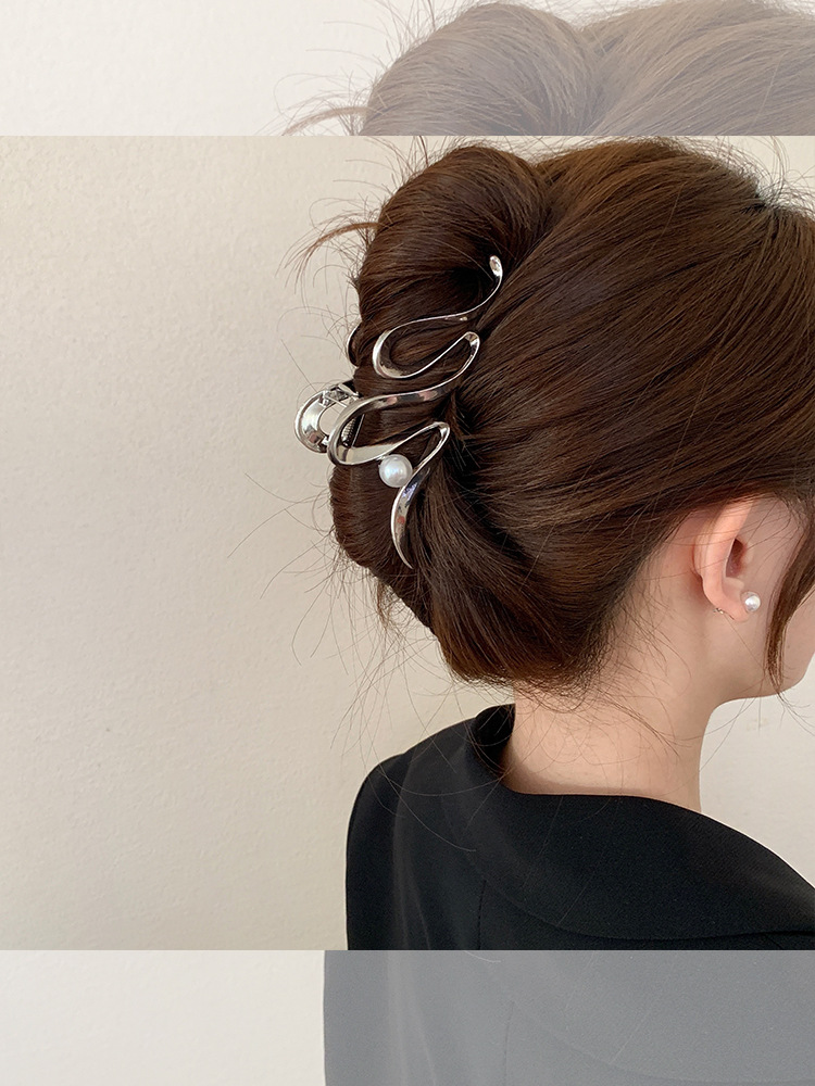 超大号珍珠波浪抓夹女头饰发夹五金女孩后脑勺盘发金属鲨鱼夹