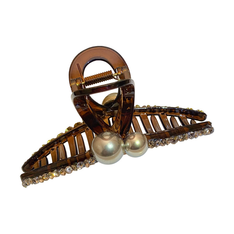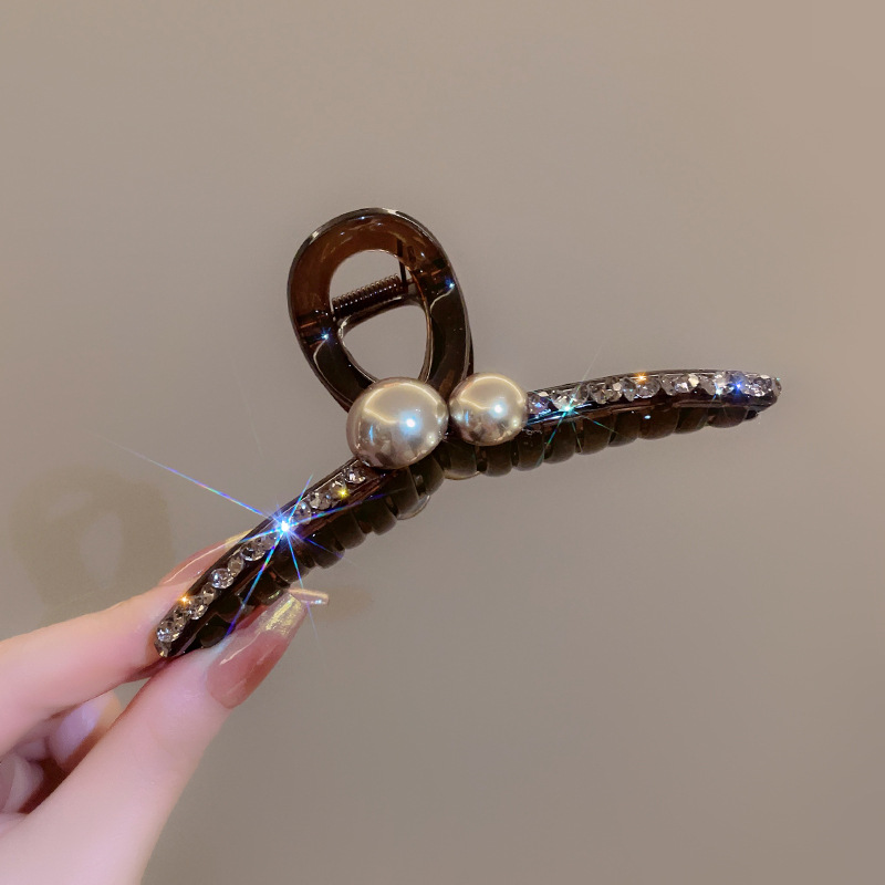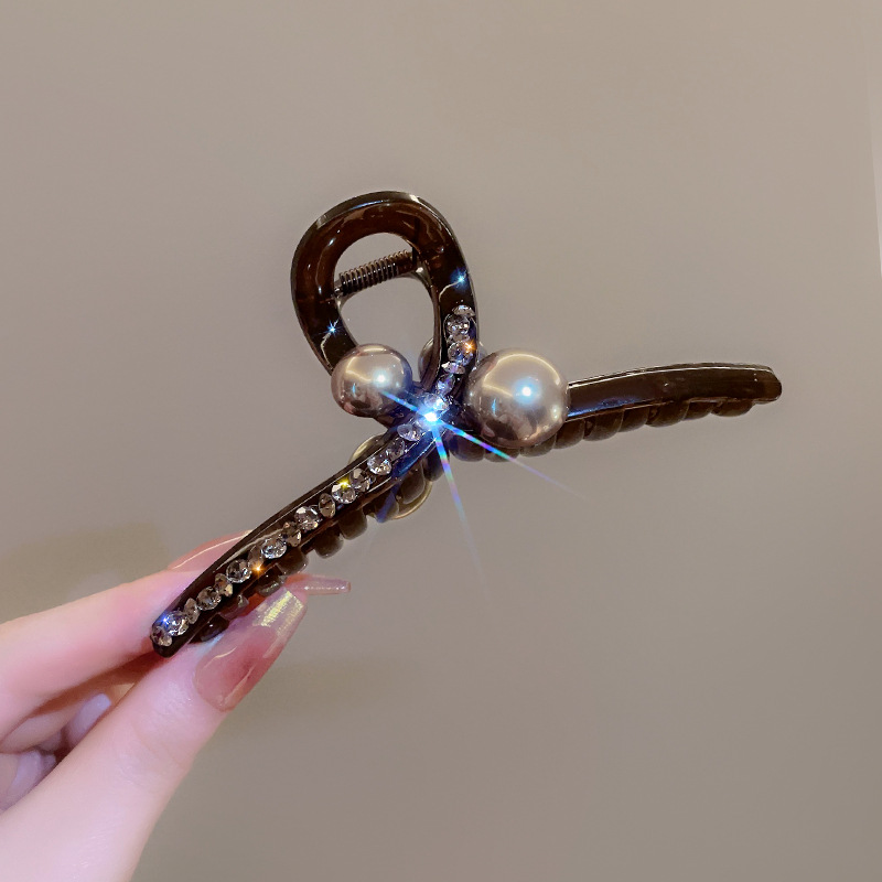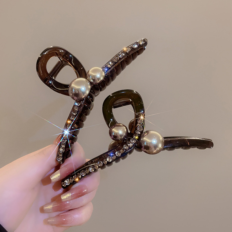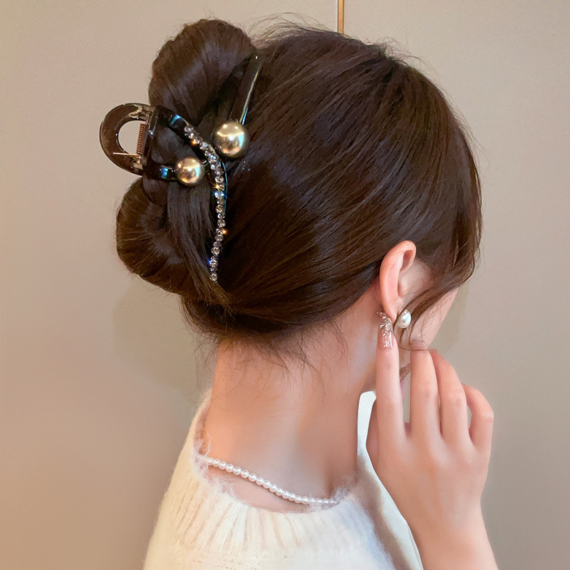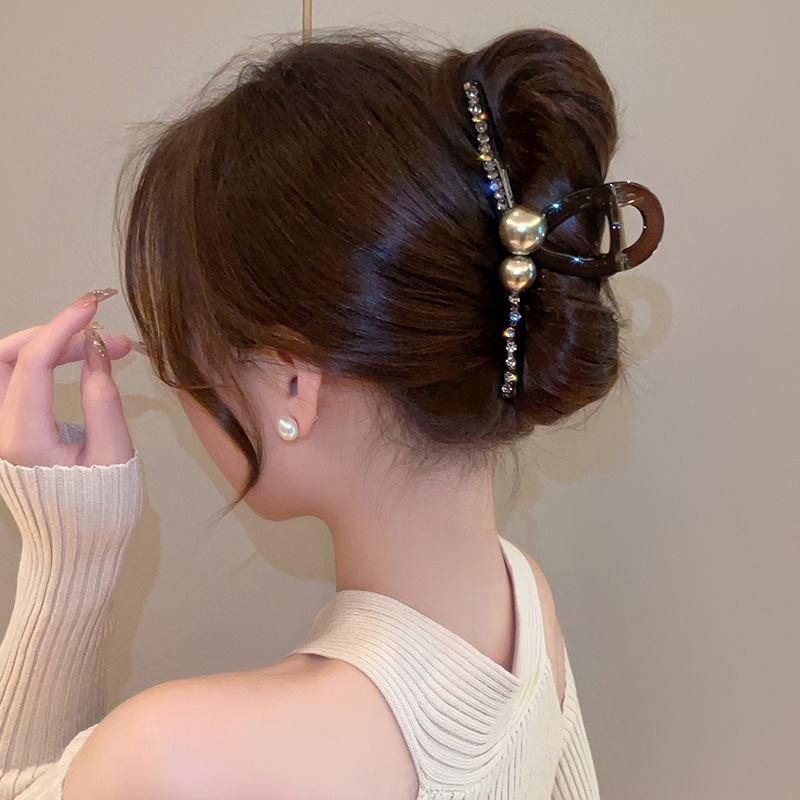 高级感珍珠水钻抓夹女大号年日韩新款后脑勺盘发鲨鱼夹发卡