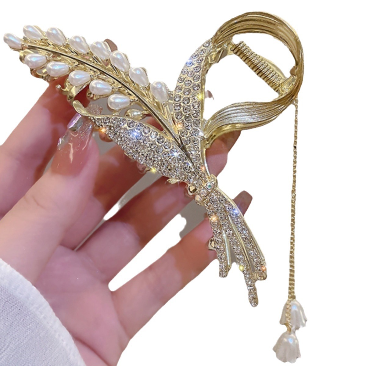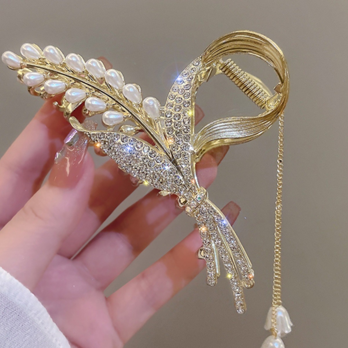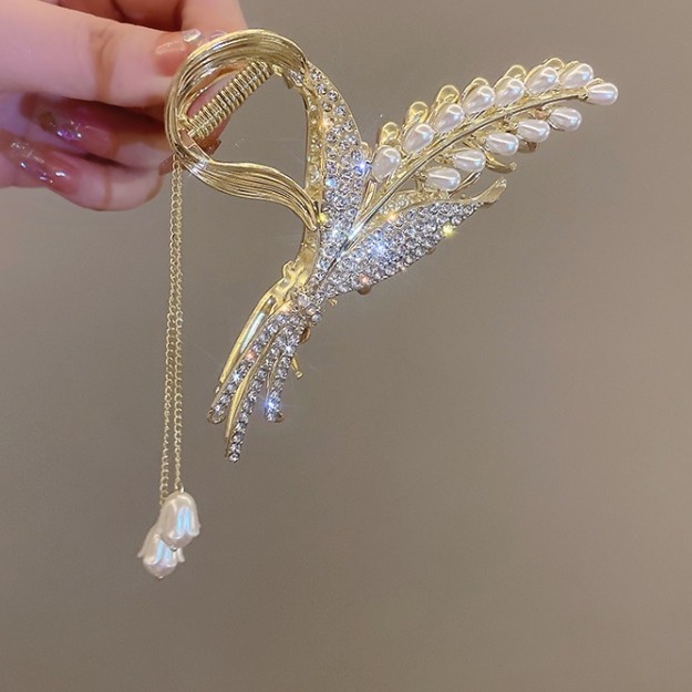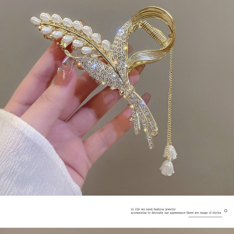 韩国新款潮麦穗流苏抓夹女后脑勺古风稻花发夹发卡花朵鲨鱼夹头饰