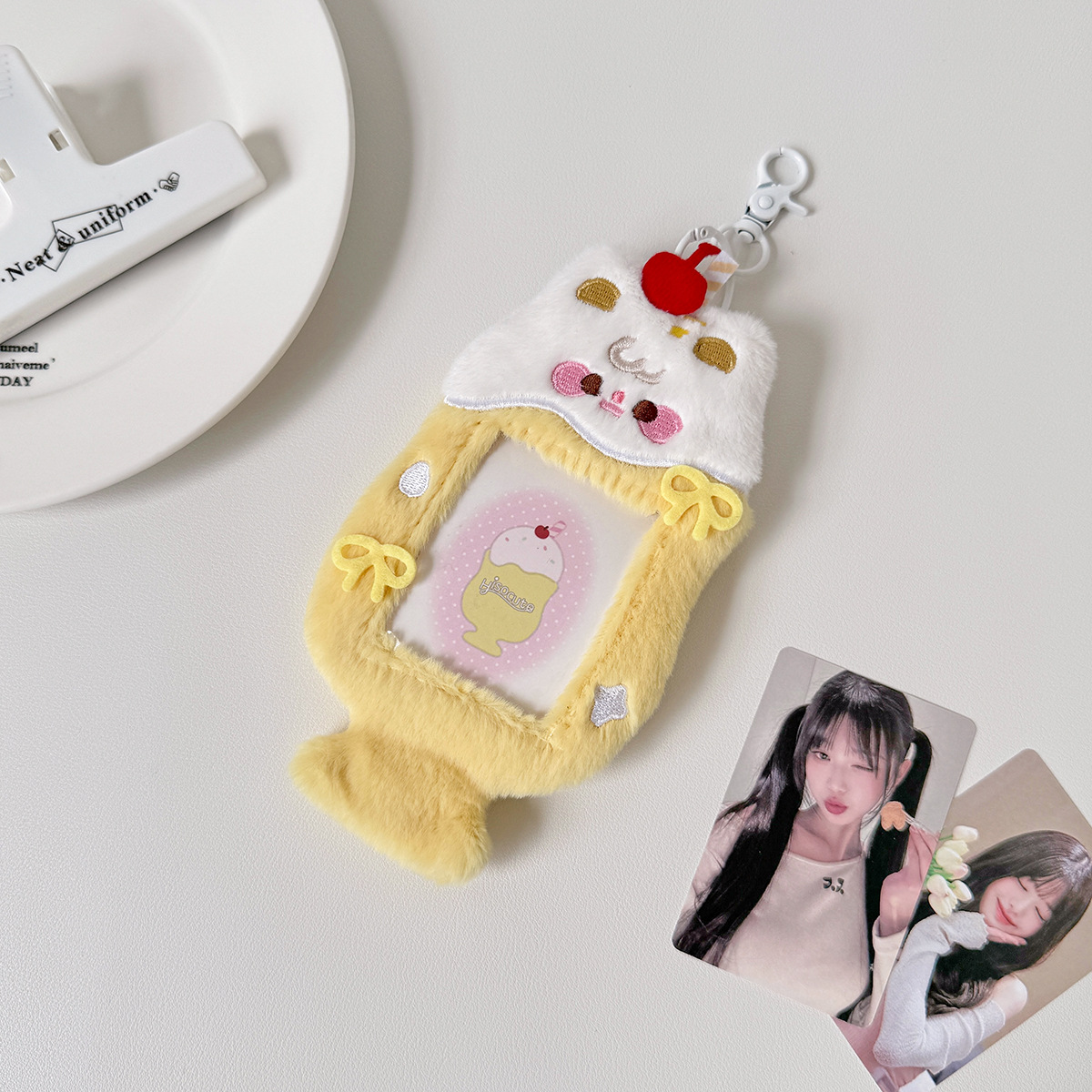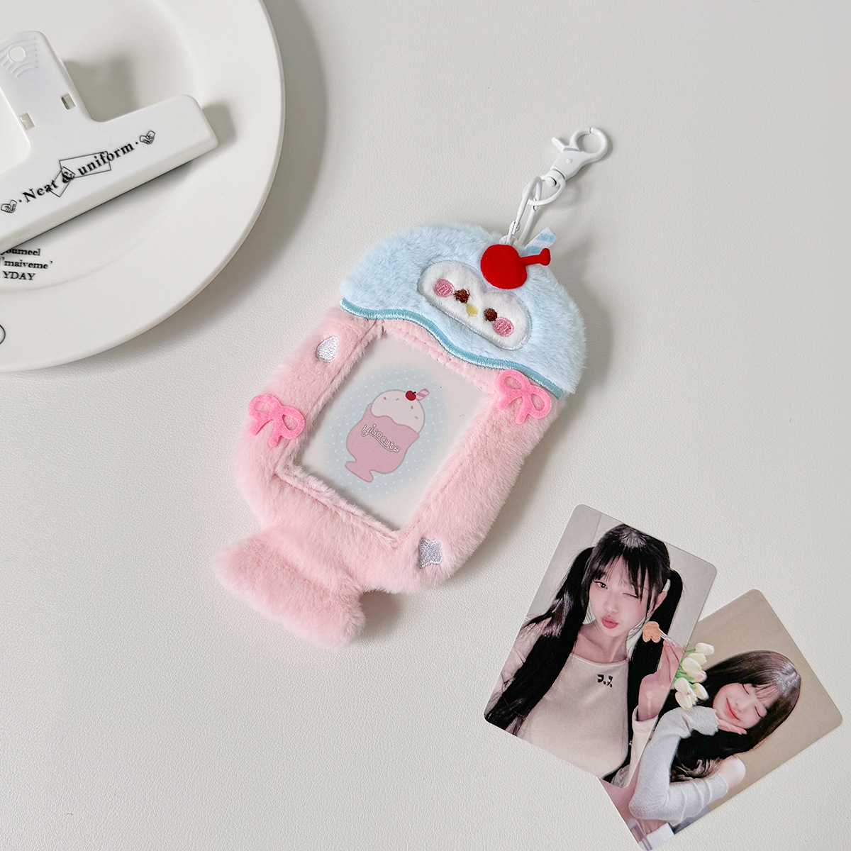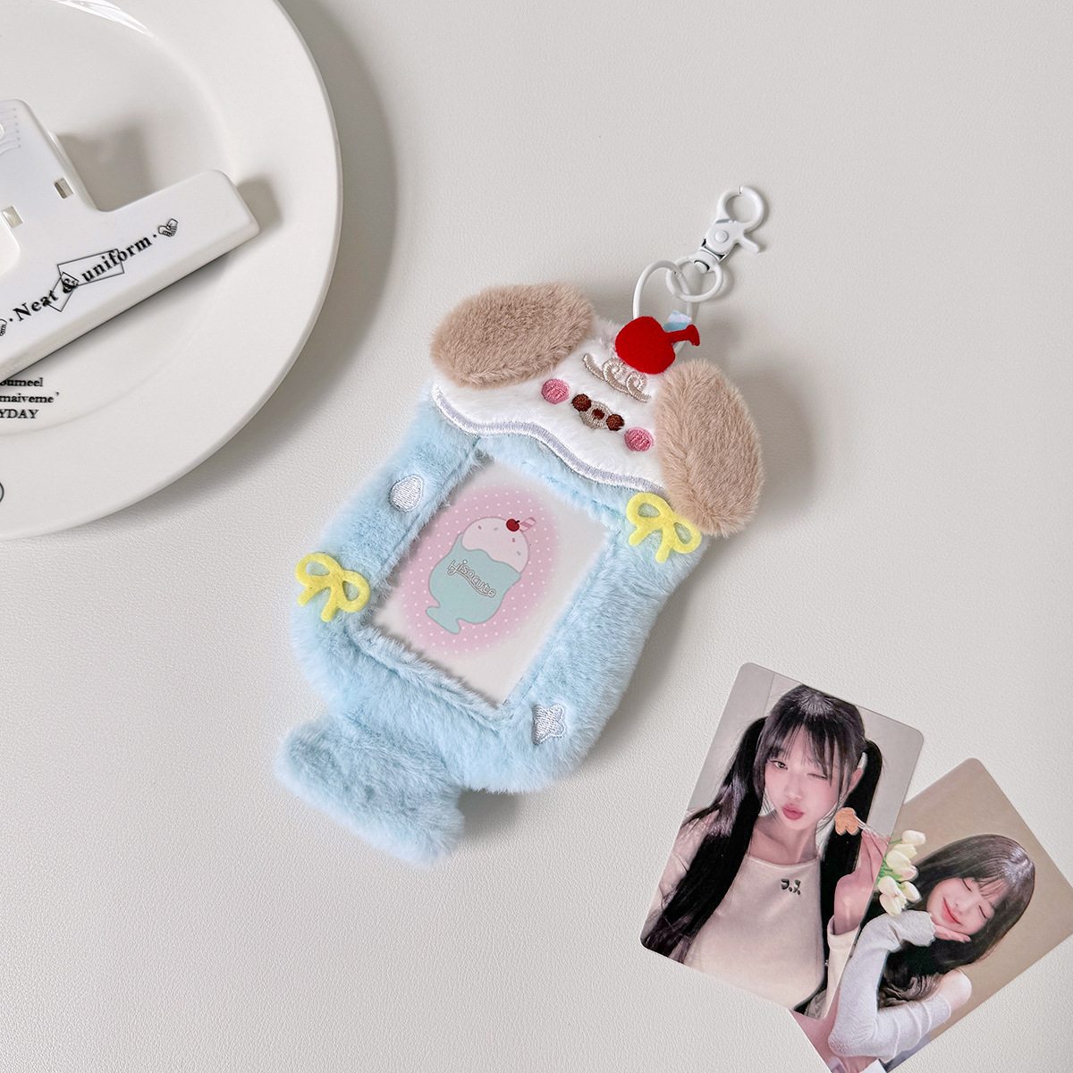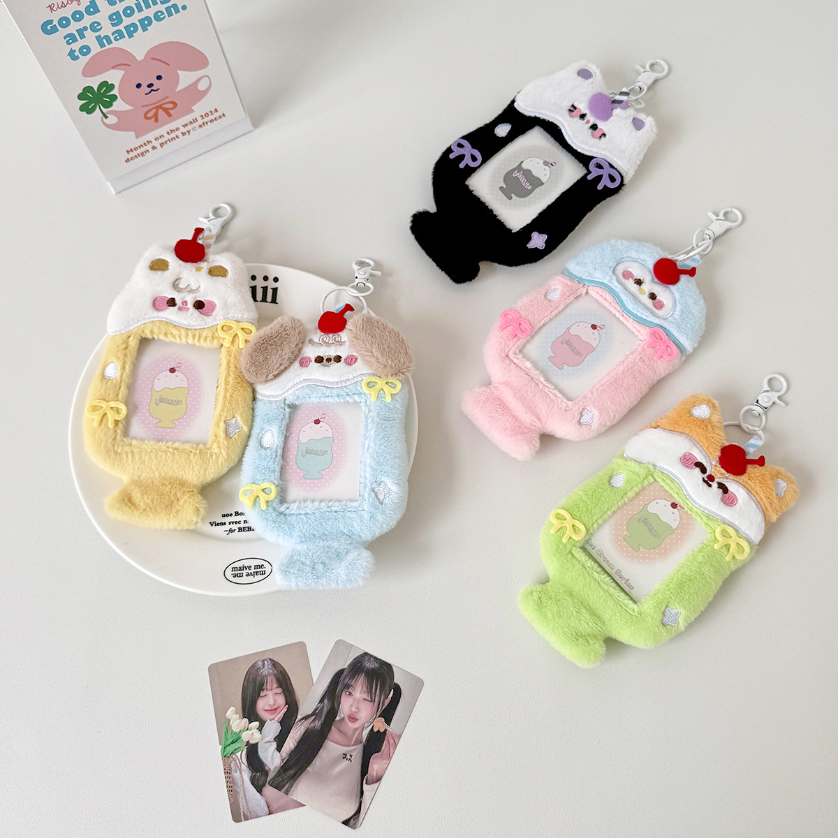 原创可爱动物毛绒卡套少女三寸拍立得背包展示挂件追星小卡保护套