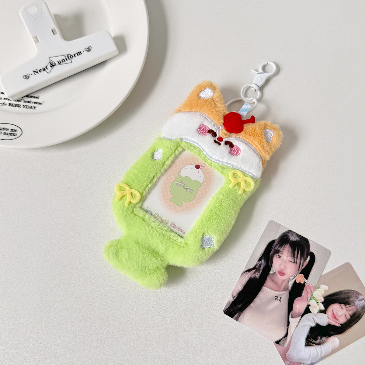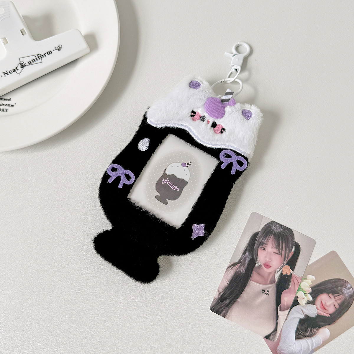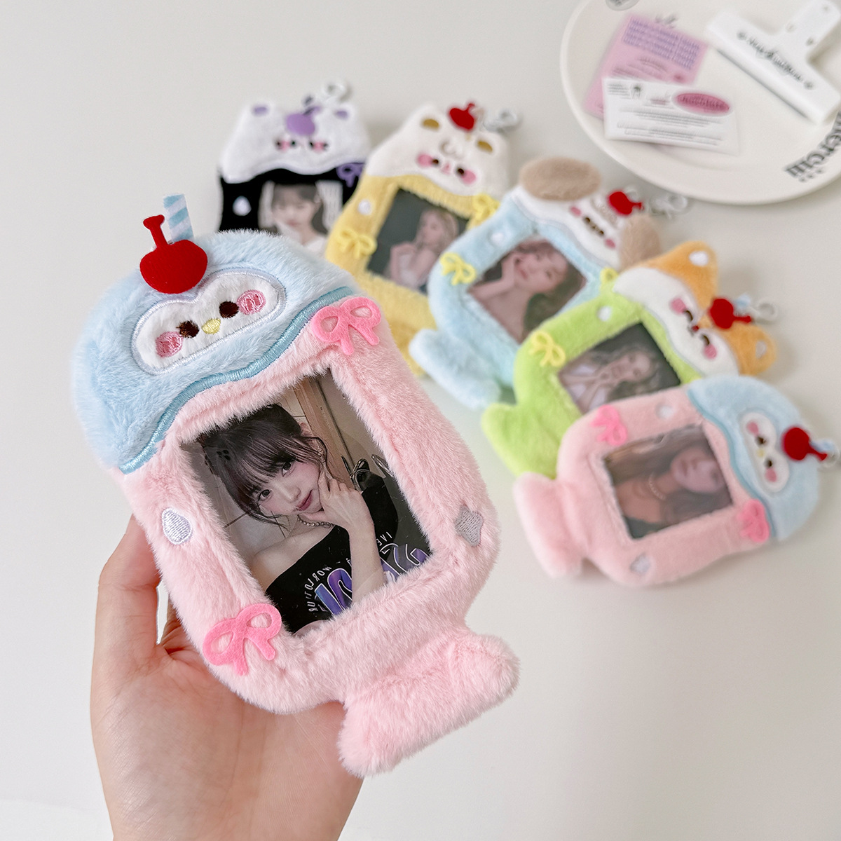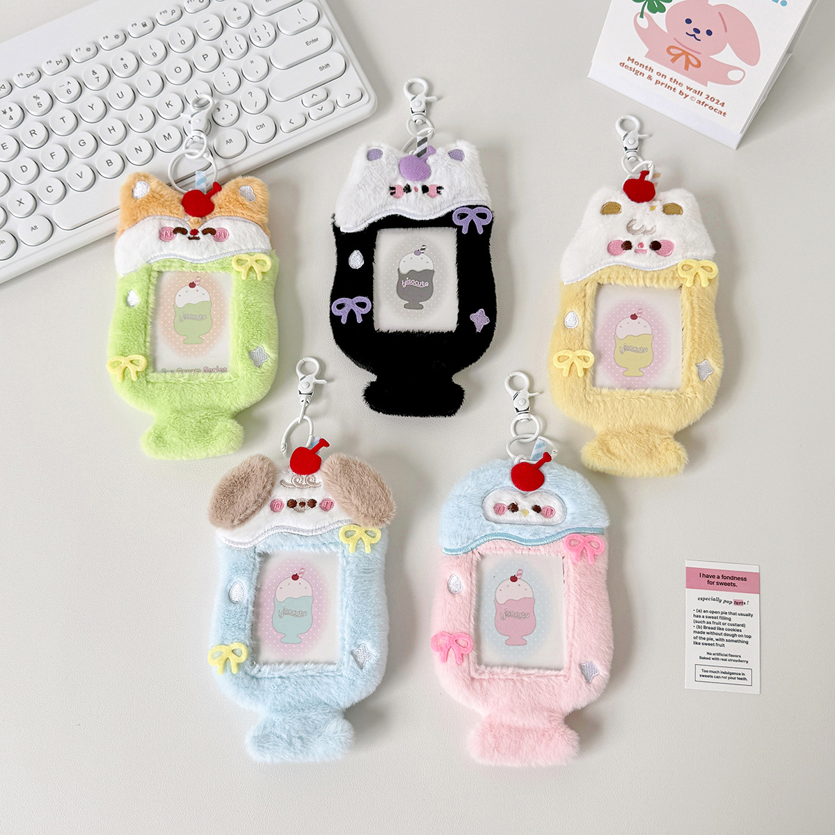 原创可爱动物毛绒卡套少女三寸拍立得背包展示挂件追星小卡保护套