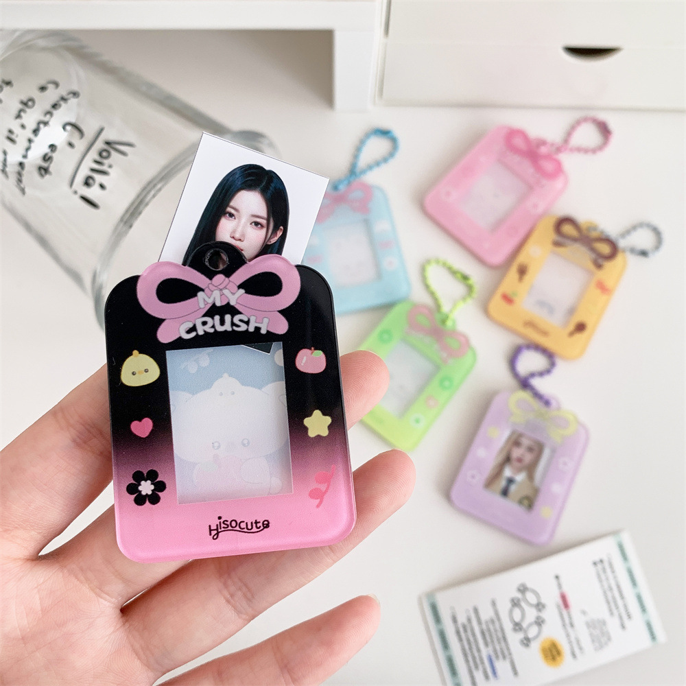 ins蝴蝶结亚克力硬卡套学生一寸证件照收纳套挂件追星钥匙扣卡套