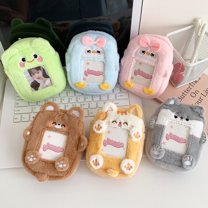 日韩原创动物毛绒卡包学生可爱卡通零钱包追星小卡收纳卡套挂件包