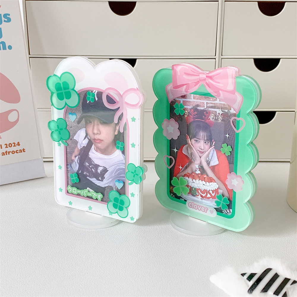 四叶草桌面展示相框明星周边三寸小卡收纳摆件拍立得DIY摆台卡套