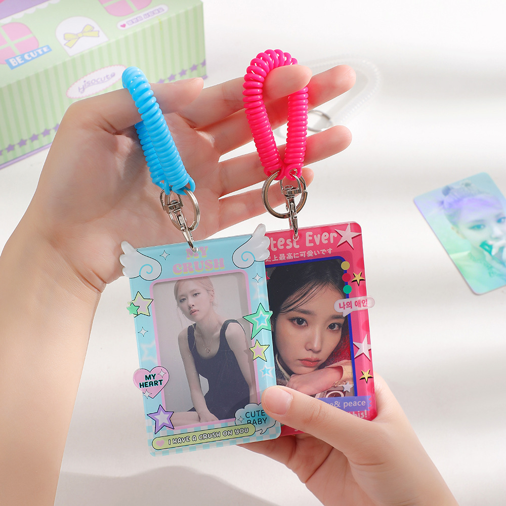 日韩亚克力硬卡套三寸拍立得追星展示相框钥匙扣挂件手账DIY卡砖