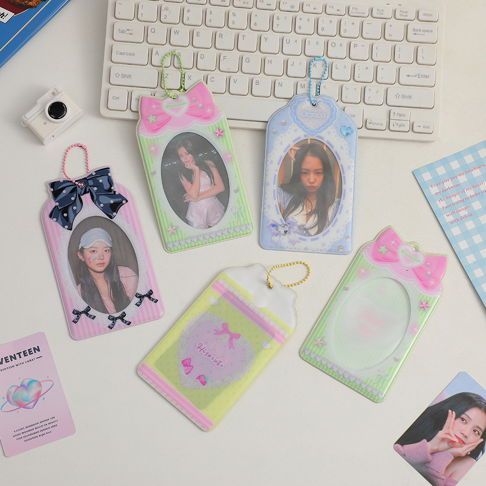 ins韩版蝴蝶结透明pvc卡套明星小卡保护套学生照片展示挂件卡包