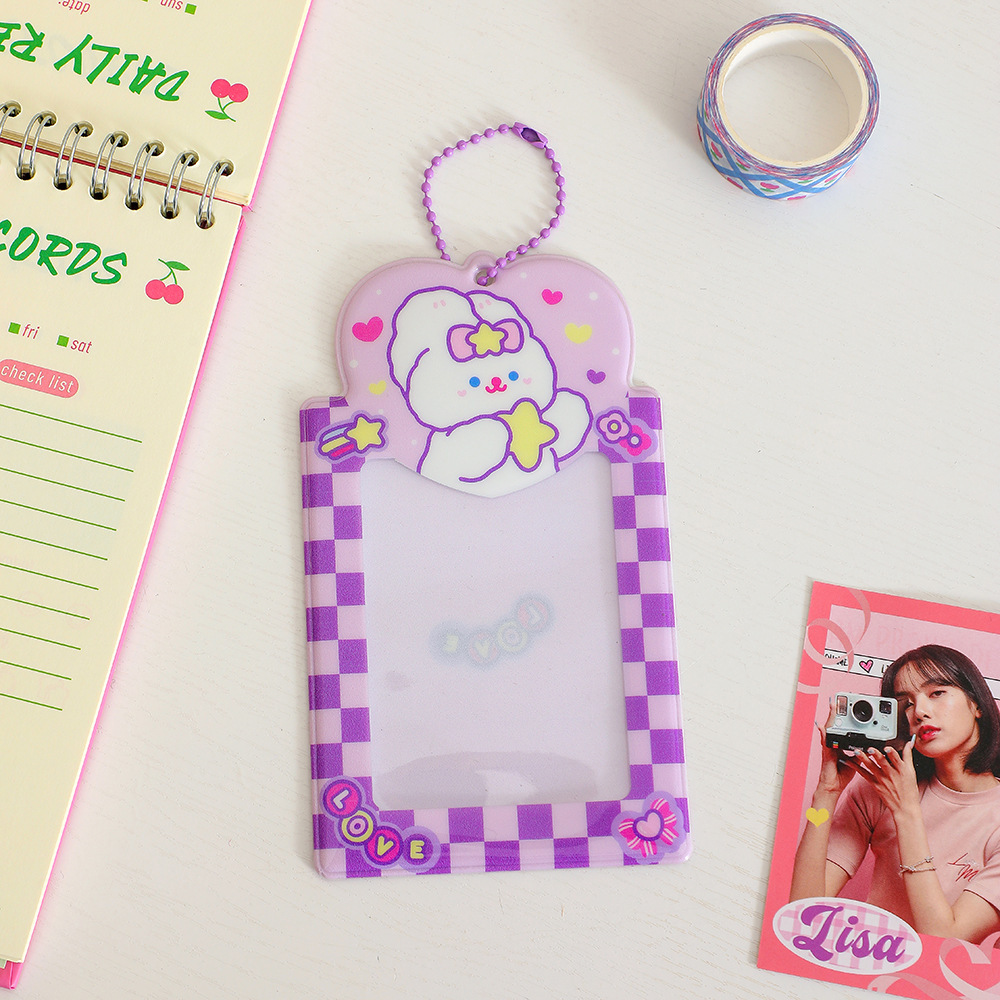 少女卡通动物咕卡卡套棋盘格卡包三寸小卡收纳册追星照片背包挂件