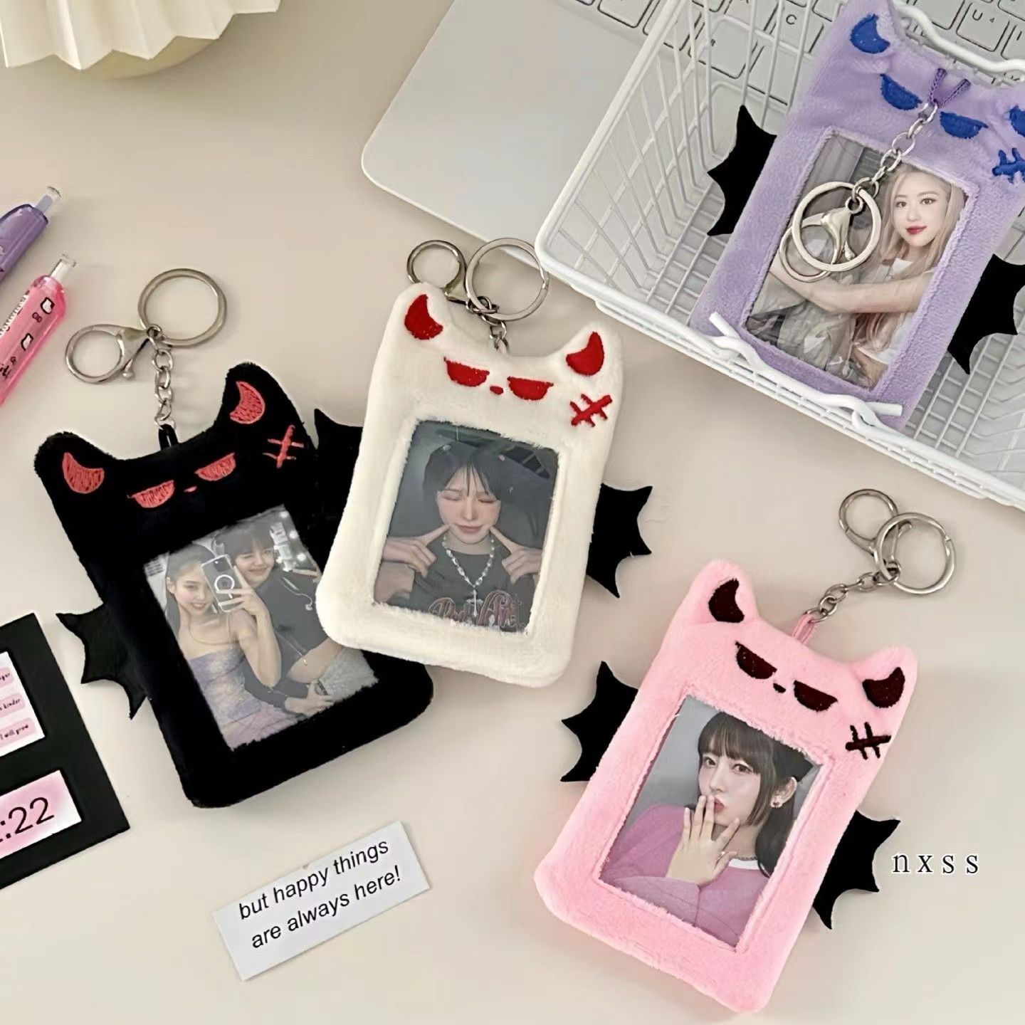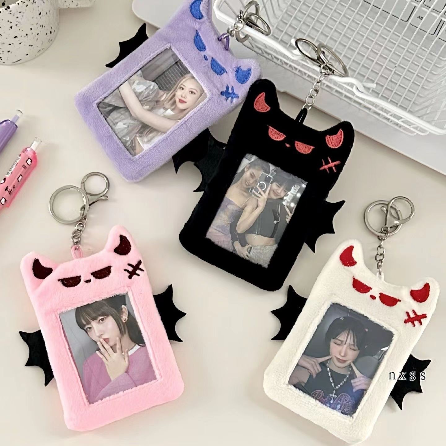 少女紫色带翅膀恶魔毛绒卡套学生爱豆小卡展示挂件卡包追星咕卡套