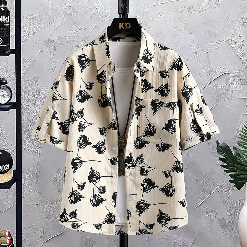男士花衬衫短袖痞帅夏季新款休闲宽松夏天冰感碎花韩版衬衣
