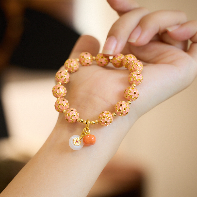 新中式景泰蓝繁花手串柿柿平安好运镂空吉祥手串寺庙同款手链
