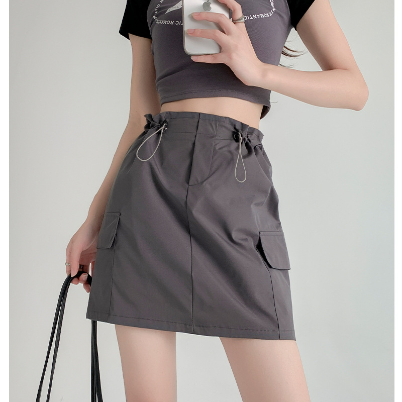 美式工装短裙女夏季新款小个子高腰半身裙显瘦a字遮胯包臀裙