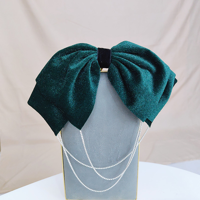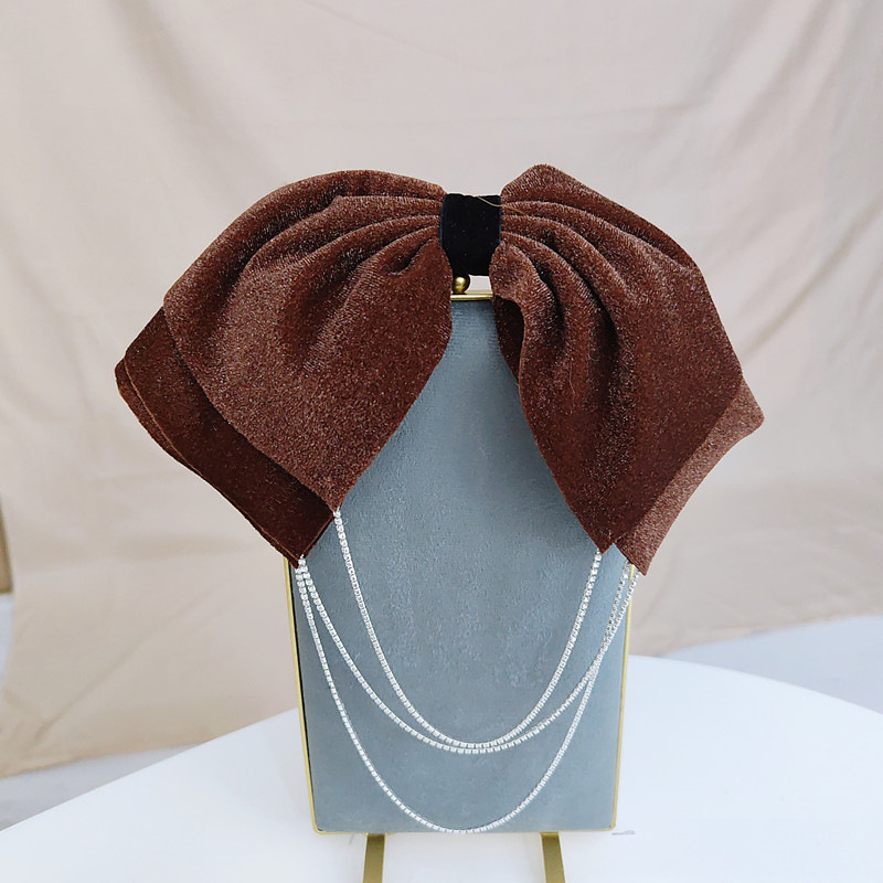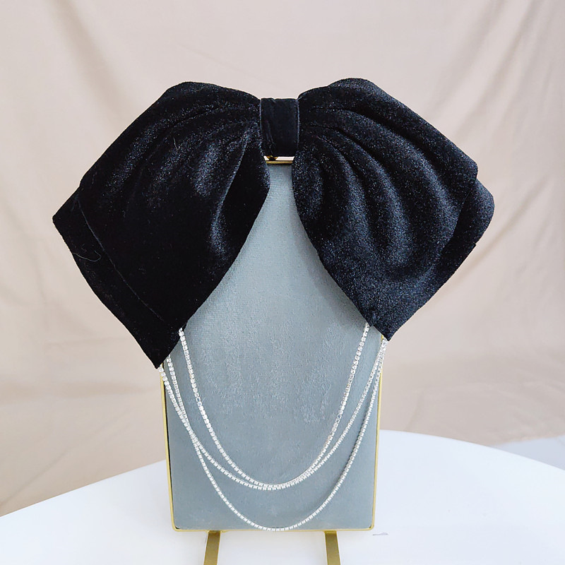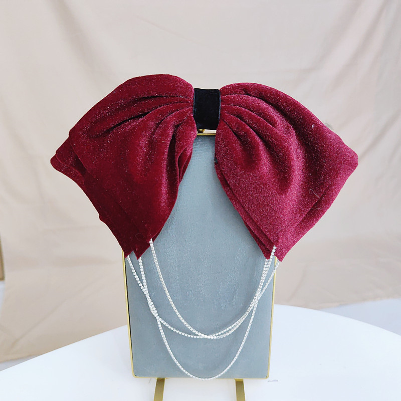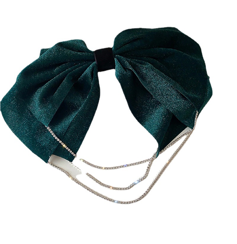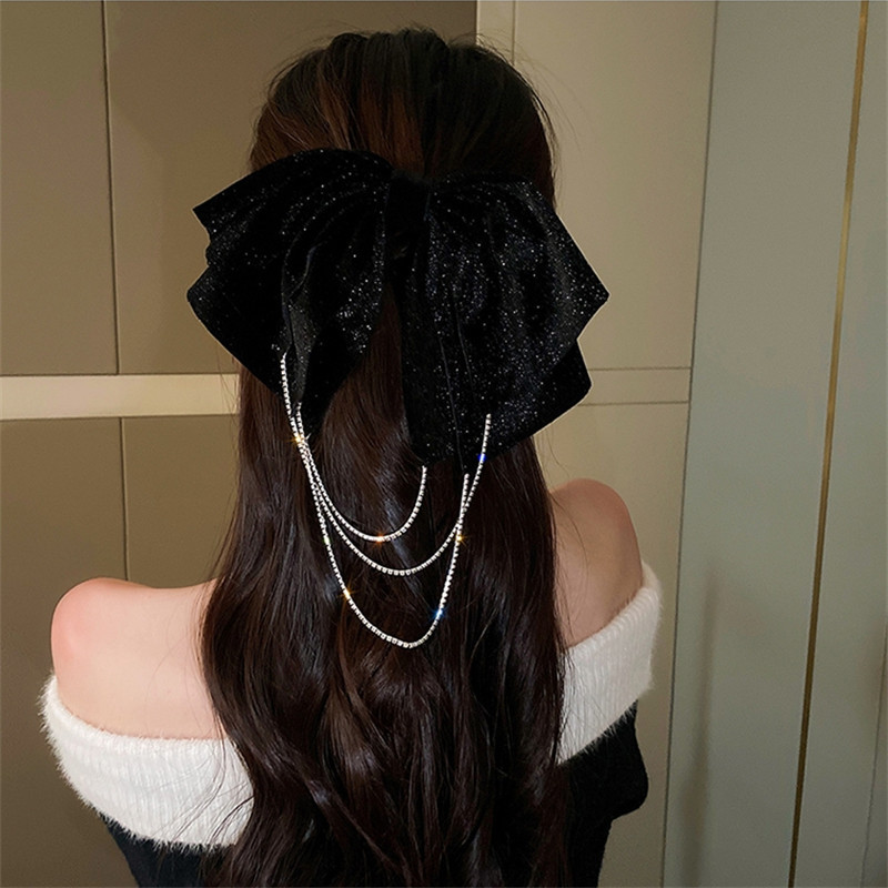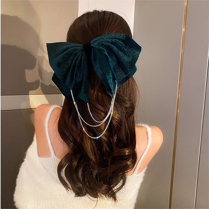 法式大蝴蝶结发夹优雅气质顶夹金丝绒镶钻流苏弹簧夹后脑勺盘发夹