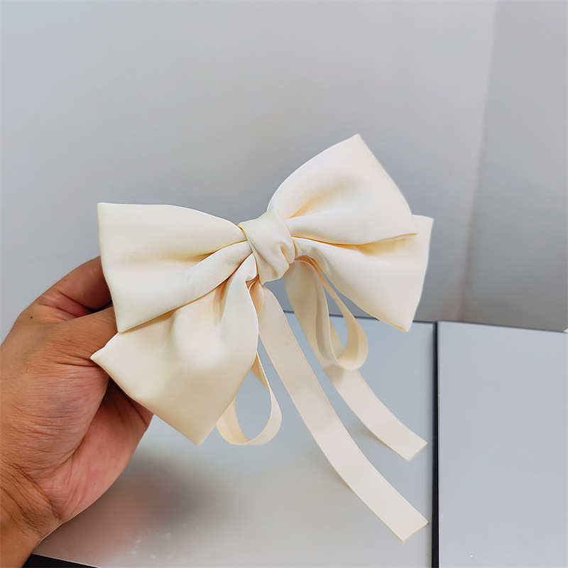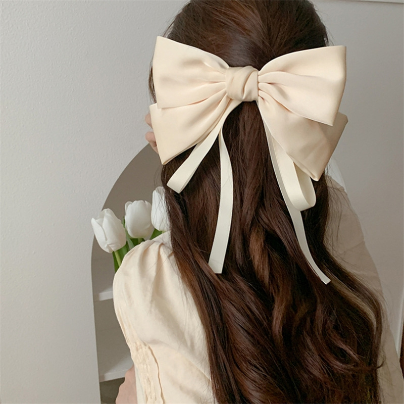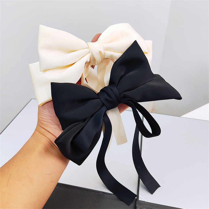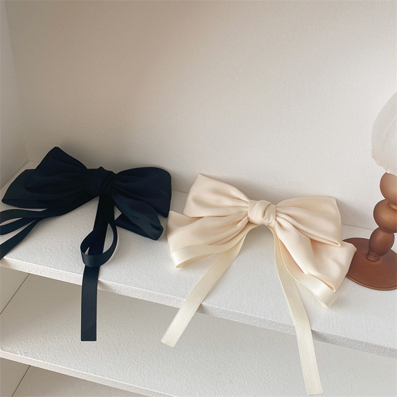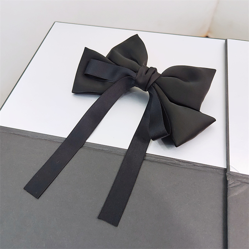 法式新款简约气质缎面蝴蝶结飘带发夹可爱少女感后脑勺弹簧夹发饰